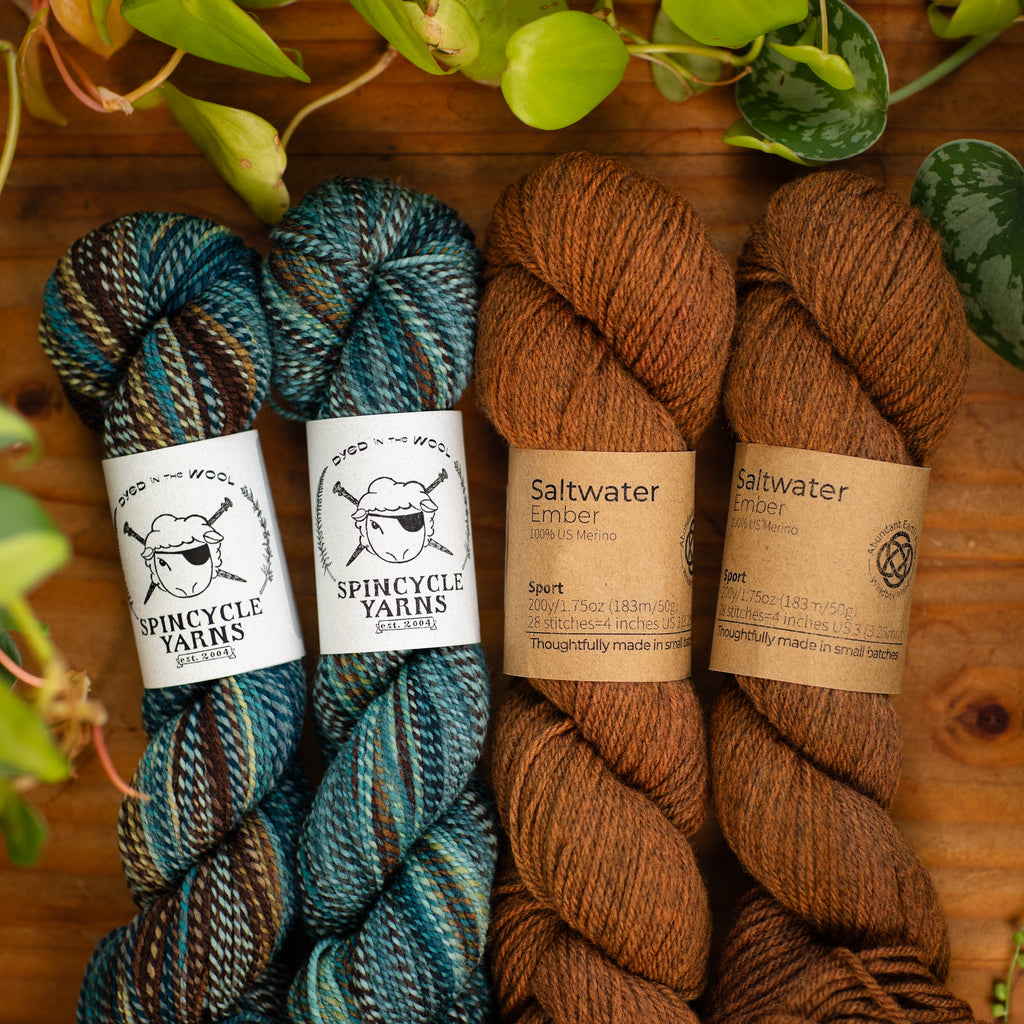 DYED IN THE WOOL • sport weight • 100% superwash American wool • 200 yards per skein • hand wash cold, lay flat to dry • MADE IN THE USA • SPUN & DYED IN WA