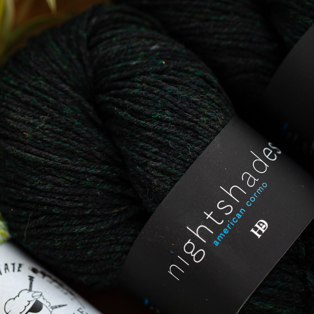 HARRISVILLE DESIGNS • NIGHTSHADES • dk weight • 100% American Cormo & Fine Wool Blend • approx. 250 yards per skein • 100 g • hand wash cold, lay flat to dry