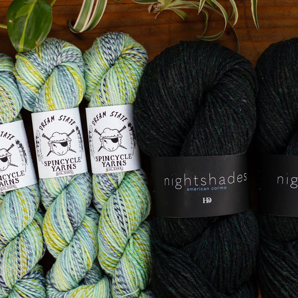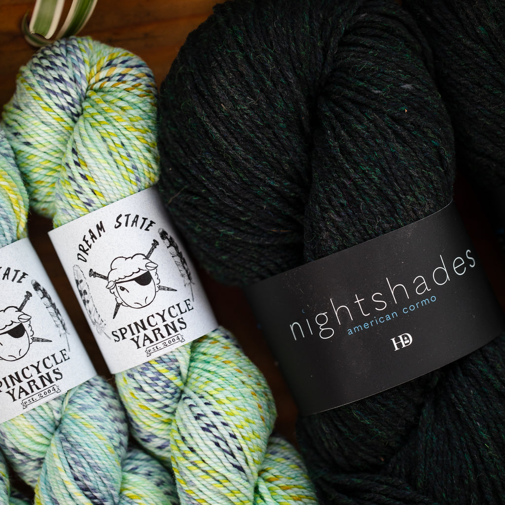 CC: Dream State (100% American wool) 150 yards per skein; 3 skeins in Light-Years