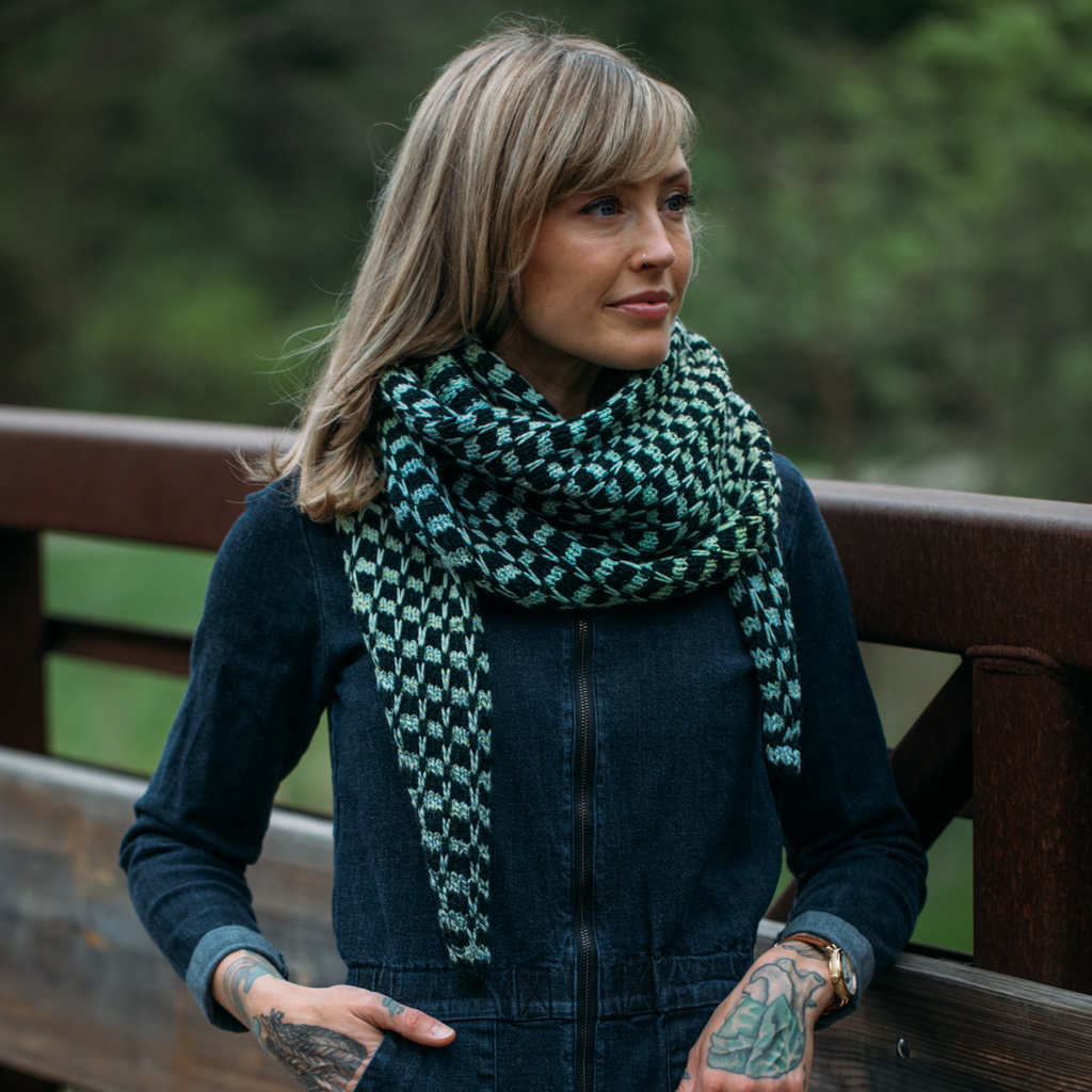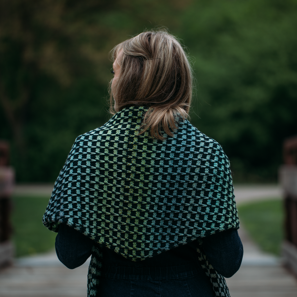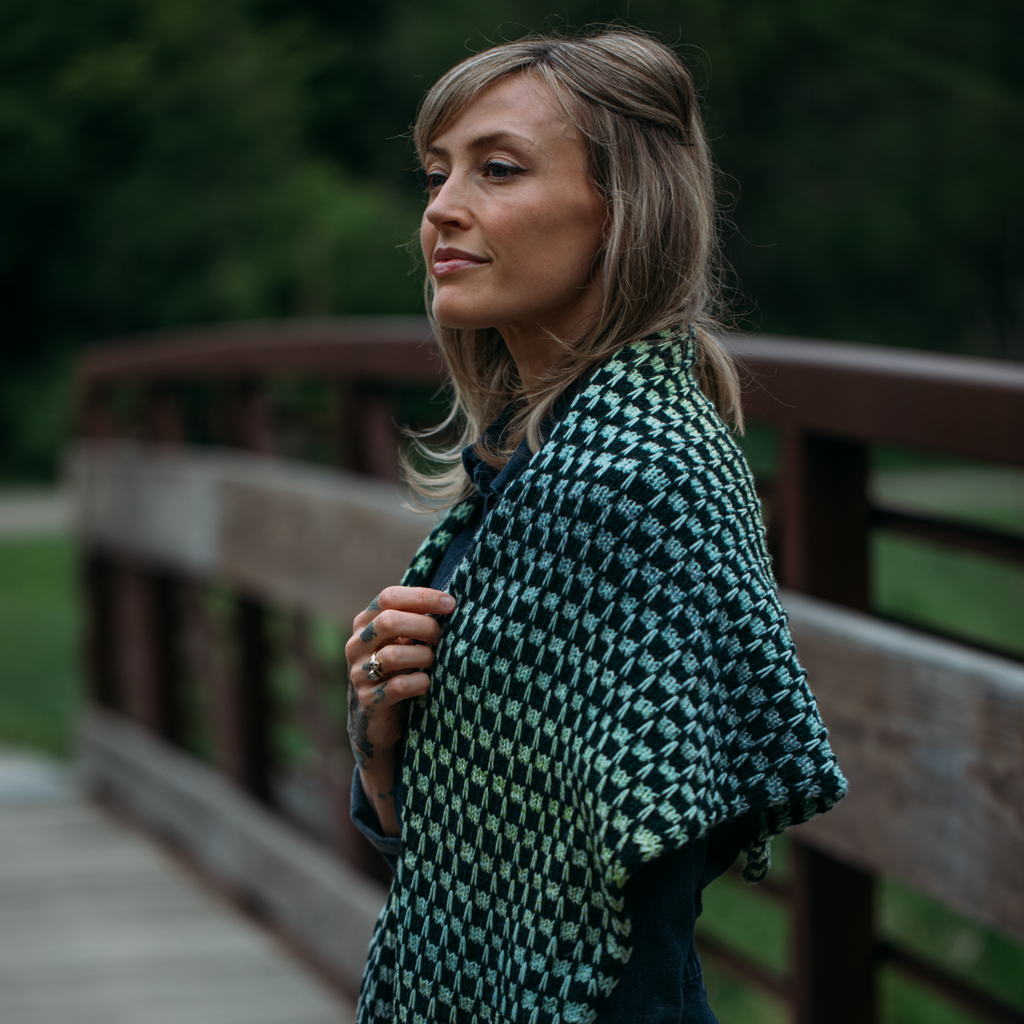 MC: Harrisville Nightshades (100% American Cormo & Fine Wool Blend) 250 yards per skein; 2 skeins in VCR (green marble)