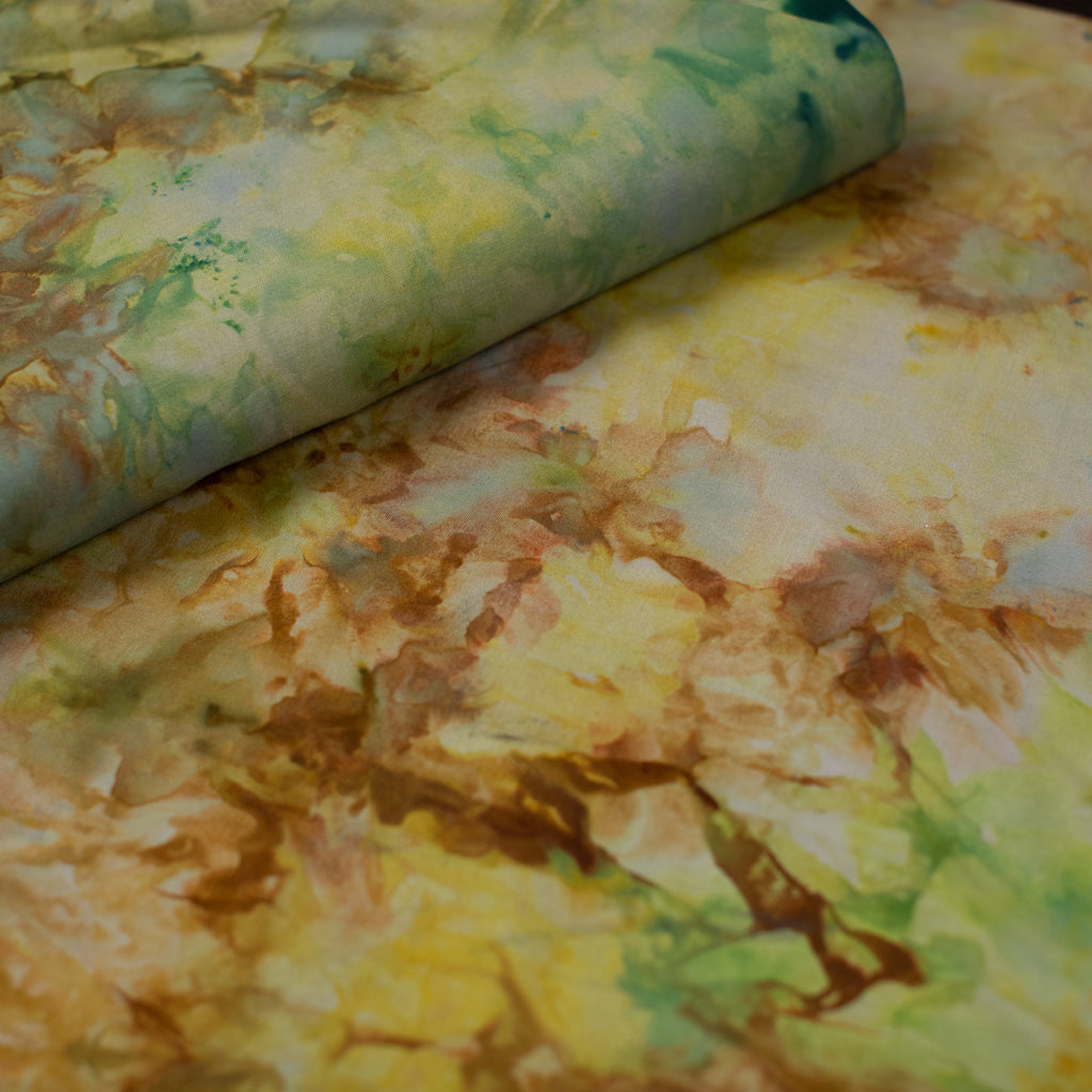 Similarly to our yarn, you will receive a cut of fabric from this bolt, but not the exact pictured. Each inch of fabric we ice dye is unique! We recommend buying your entire yardage requirement for your project all at once, as the fabric is one of a kind.