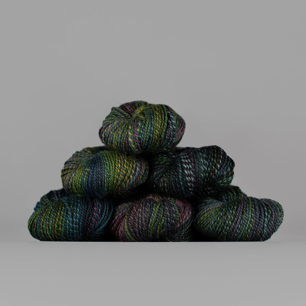 You will receive a skein from this colorway, but not the exact skein pictured. • Due to our “dyed in the wool” process, each skein we produce is unique, even within a dyelot. • If you have specific color preferences, please leave a note in the box at checkout. • We recommend buying your entire yardage requirement for your project in the same transaction, so that we can hand select skeins that match.