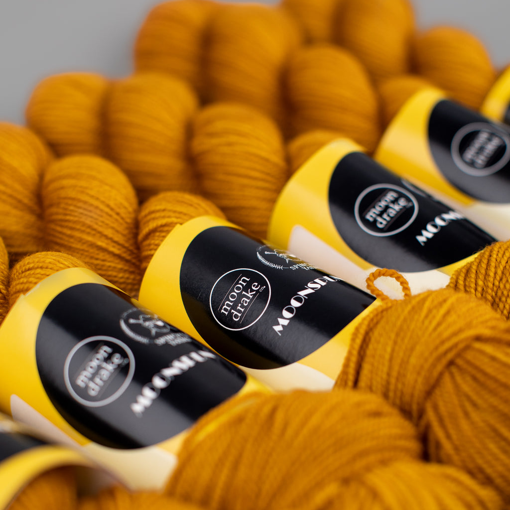 MOONSPUN • sport weight • 100% superwashed American wool • 300 yards per skein • hand wash cold, lay flat to dry • MADE IN THE USA FROM SHEEP TO SKEIN