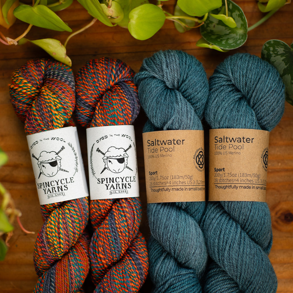MC: Abundant Earth Saltwater (100% US Merino) 200 yards per skein; 2 skeins in Tide Pool
