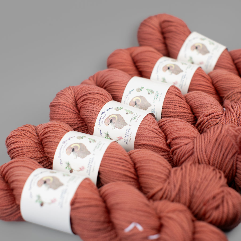 SPINSTER'S DAUGHTER WORSTED • worsted weight • 100% superwash American wool • 200 yards per skein • hand wash cold, lay flat to dry • MADE IN THE USA • SPUN IN WA • DYED IN MT