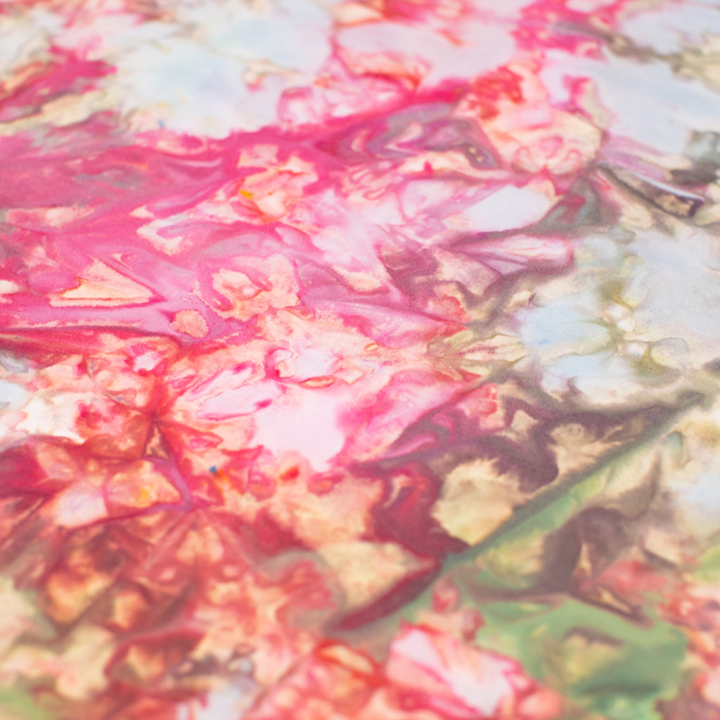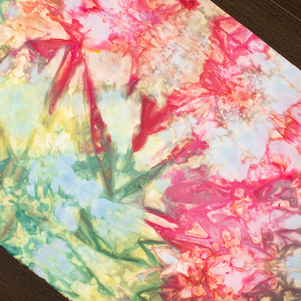 Similarly to our yarn, you will receive a cut of fabric from this bolt, but not the exact pictured. Each inch of fabric we ice dye is unique! We recommend buying your entire yardage requirement for your project all at once, as the fabric is one of a kind.