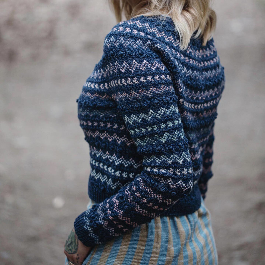 For high contrast colorwork, we recommend steam blocking to avoid color transfer. • Some dyes are notoriously difficult to set, and may exhaust some color even after our final wash. • Please keep this in mind if you are combining any hand dyed yarn with a light color in the same project. • If you plan to combine a hand dyed yarn, especially a very saturated colorway, with a lighter yarn, we suggest you test your darker skeins for possible color transfer by soaking them first. • To wash your knitwear, a quick cold water dip with a no-rinse wool wash is recommended.