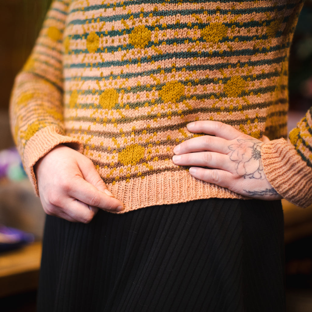 For high contrast colorwork, we recommend steam blocking to avoid color transfer. • Some dyes are notoriously difficult to set, and may exhaust some color even after our final wash. • Please keep this in mind if you are combining any hand dyed yarn with a light color in the same project. • If you plan to combine a hand dyed yarn, especially a very saturated colorway, with a lighter yarn, we suggest you test your darker skeins for possible color transfer by soaking them first. • To wash your knitwear, a quick cold water dip with a no-rinse wool wash is recommended.