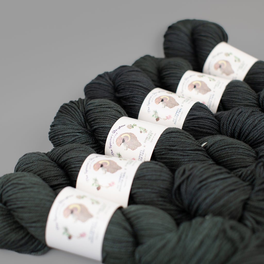 SPINSTER'S DAUGHTER WORSTED • worsted weight • 100% superwash American wool • 200 yards per skein • hand wash cold, lay flat to dry • MADE IN THE USA • SPUN IN WA • DYED IN MT