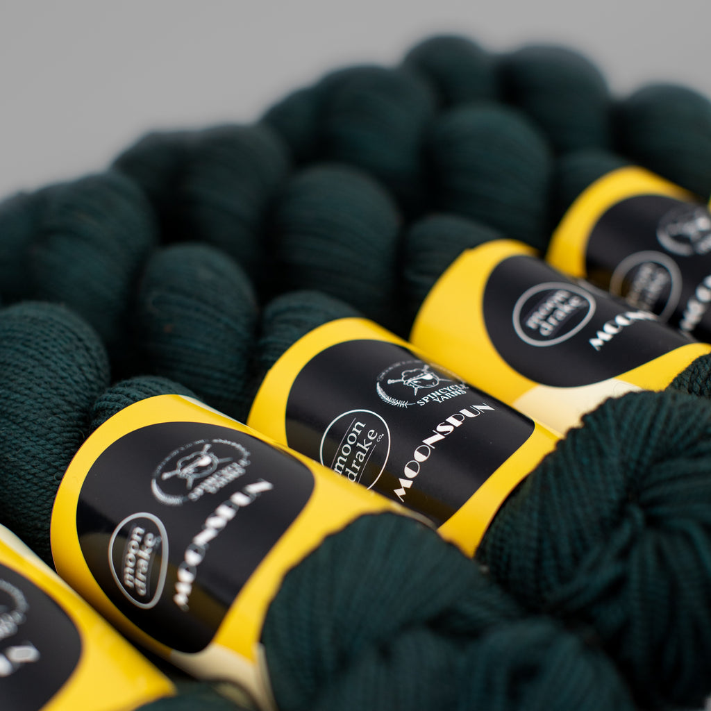 MOONSPUN • sport weight • 100% superwashed American wool • 300 yards per skein • hand wash cold, lay flat to dry • MADE IN THE USA FROM SHEEP TO SKEIN