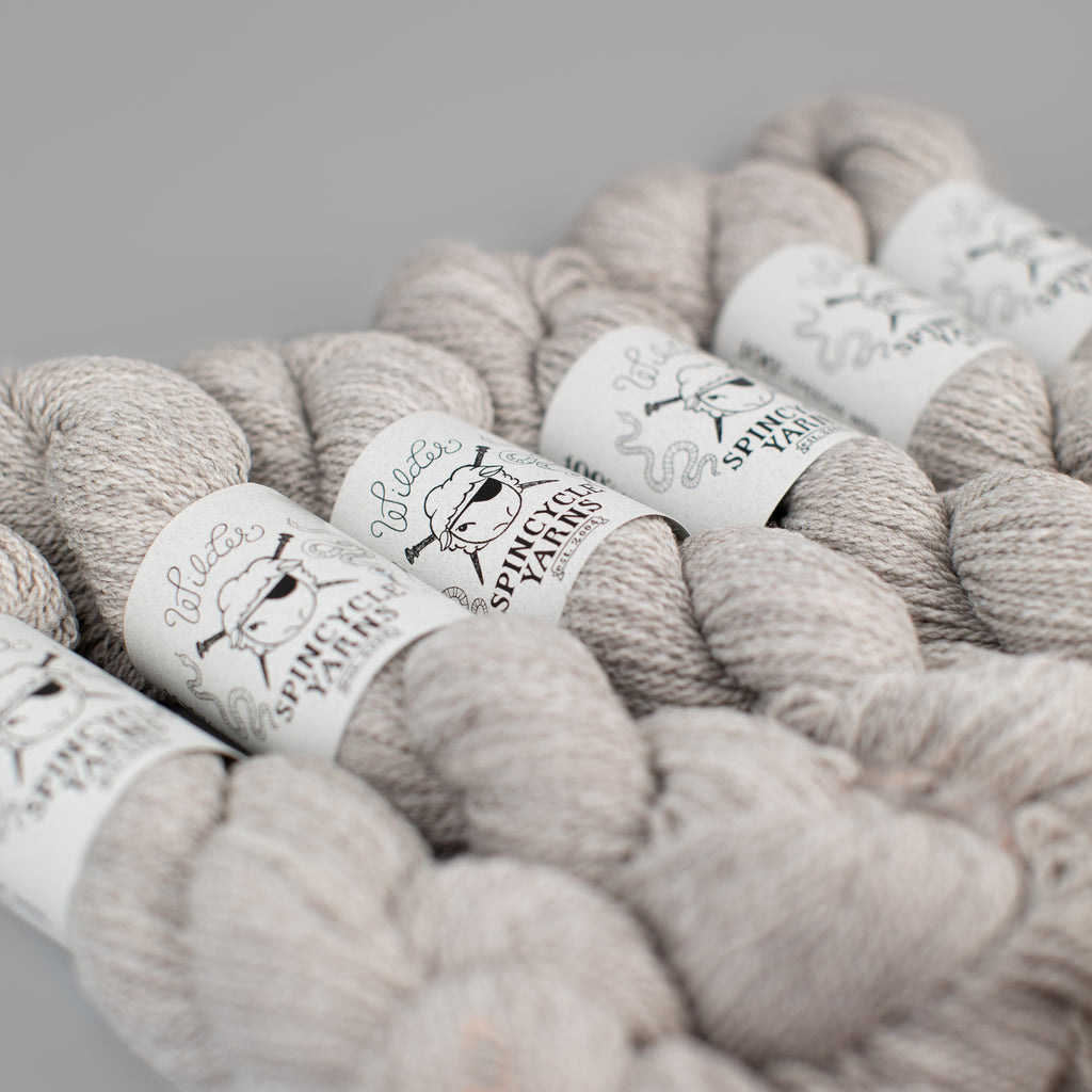 Wilder is produced for us at Mountain Meadows in Wyoming and is perfect to pair with our Dyed In The Wool! Here we have a very light, pearlish grey.