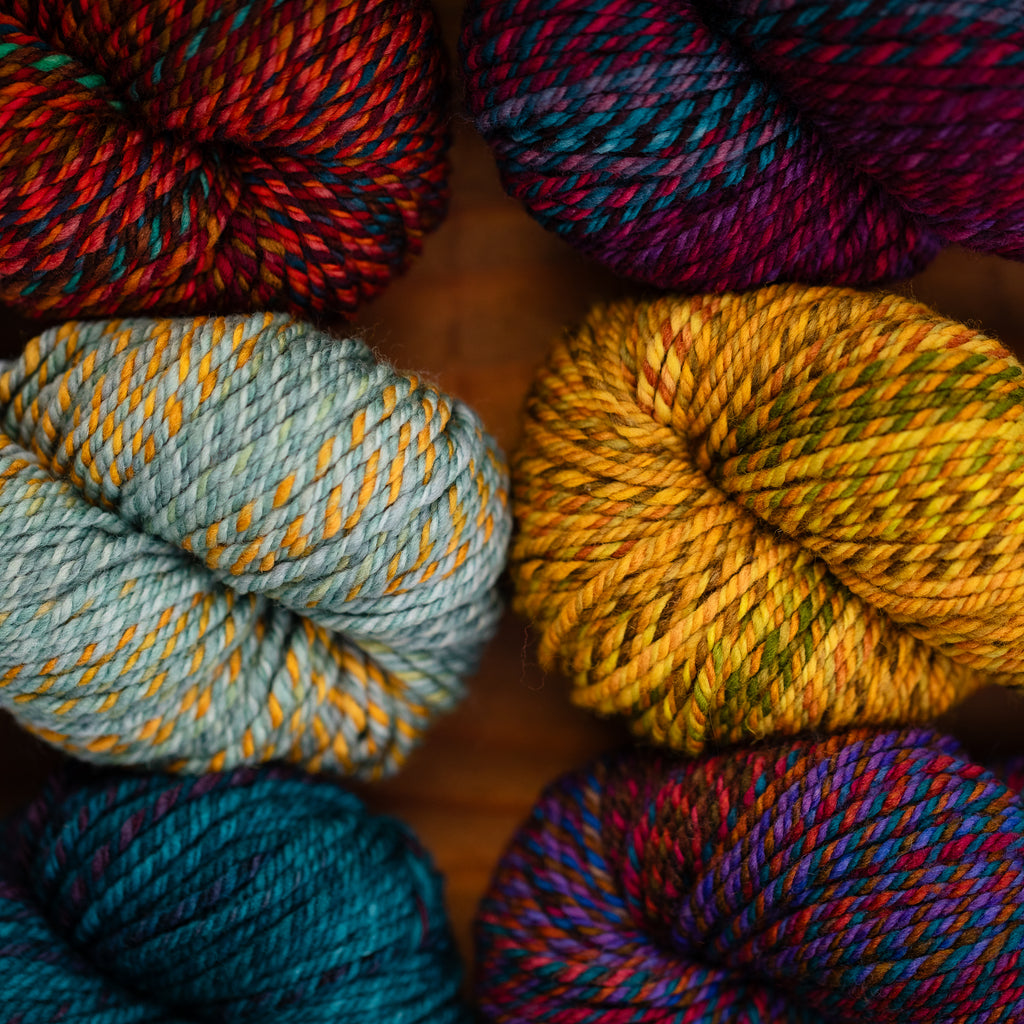 You will receive a skein from this colorway, but not the exact skein pictured. • Due to our “dyed in the wool” process, each skein we produce is unique, even within a dyelot. • If you have specific color preferences, please leave a note in the box at checkout. • We recommend buying your entire yardage requirement for your project in the same transaction, so that we can hand select skeins that match.