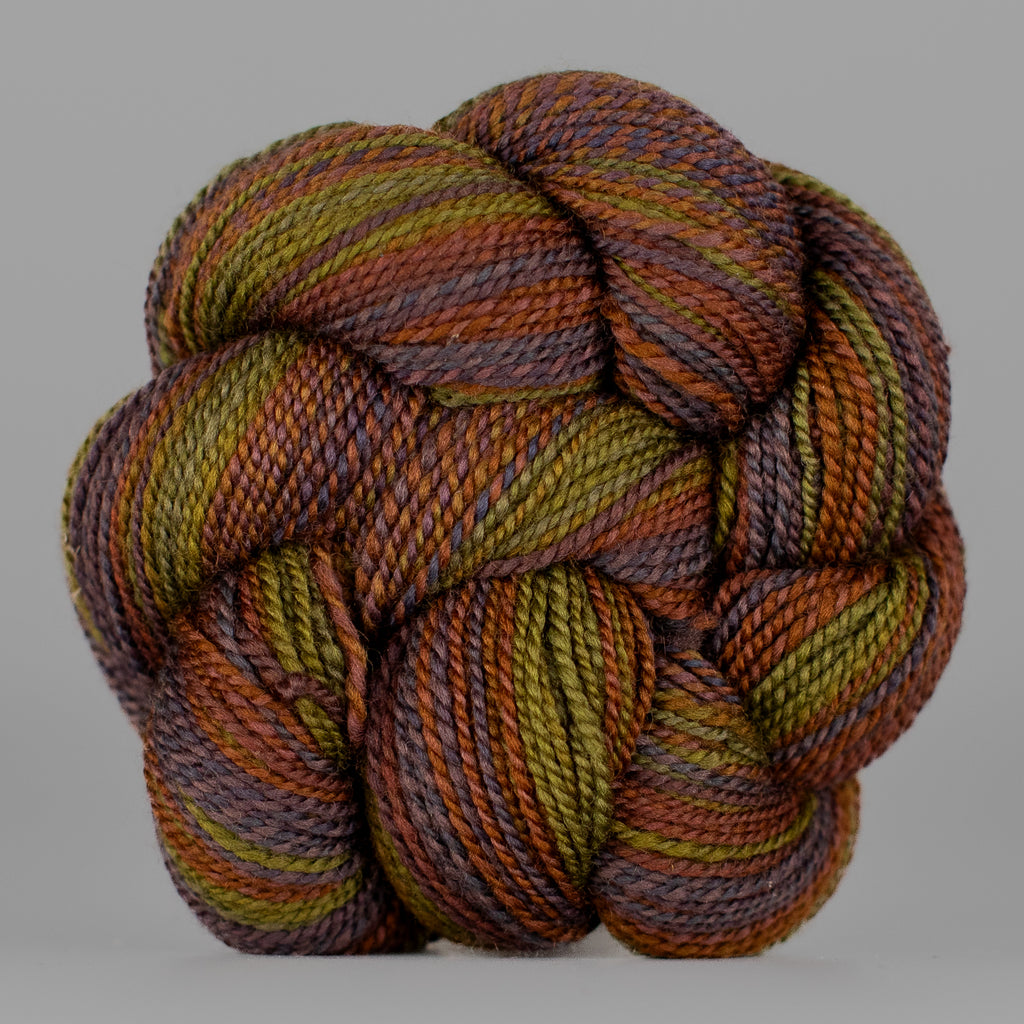 You will receive a skein from this colorway, but not the exact skein pictured. • Due to our “dyed in the wool” process, each skein we produce is unique, even within a dyelot. • If you have specific color preferences, please leave a note in the box at checkout. • We recommend buying your entire yardage requirement for your project in the same transaction, so that we can hand select skeins that match.