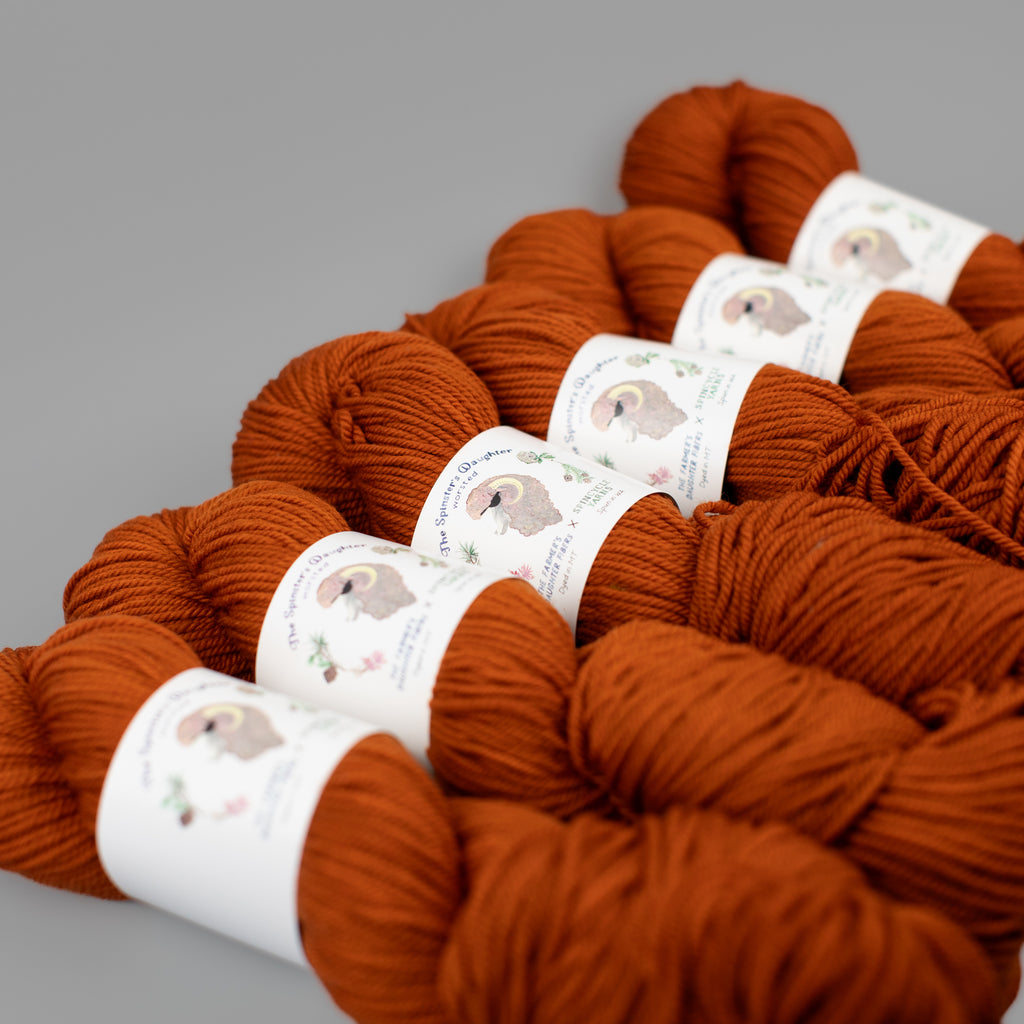 SPINSTER'S DAUGHTER WORSTED • worsted weight • 100% superwash American wool • 200 yards per skein • hand wash cold, lay flat to dry • MADE IN THE USA • SPUN IN WA • DYED IN MT