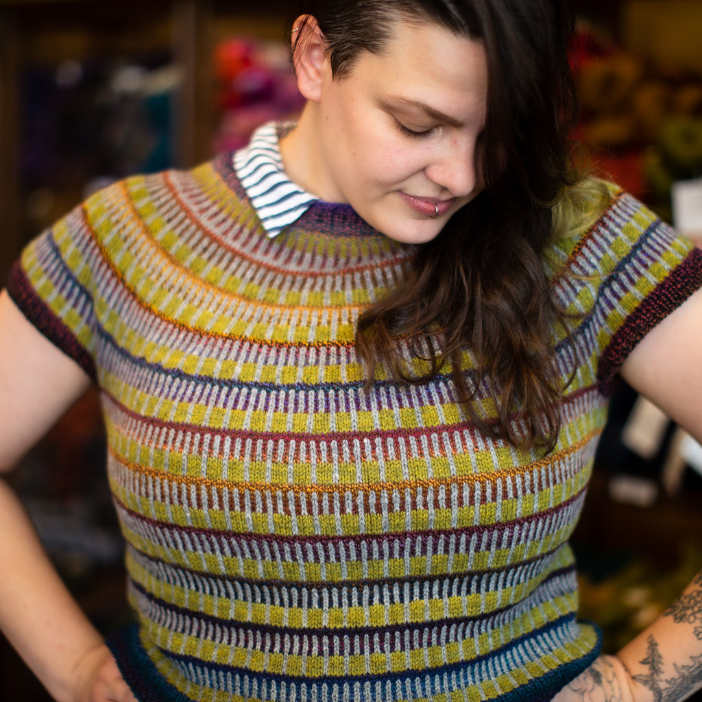 For high contrast colorwork, we recommend steam blocking to avoid color transfer. • Some dyes are notoriously difficult to set, and may exhaust some color even after our final wash. • Please keep this in mind if you are combining any hand dyed yarn with a light color in the same project. • If you plan to combine a hand dyed yarn, especially a very saturated colorway, with a lighter yarn, we suggest you test your darker skeins for possible color transfer by soaking them first. • To wash your knitwear, a quick cold water dip with a no-rinse wool wash is recommended.