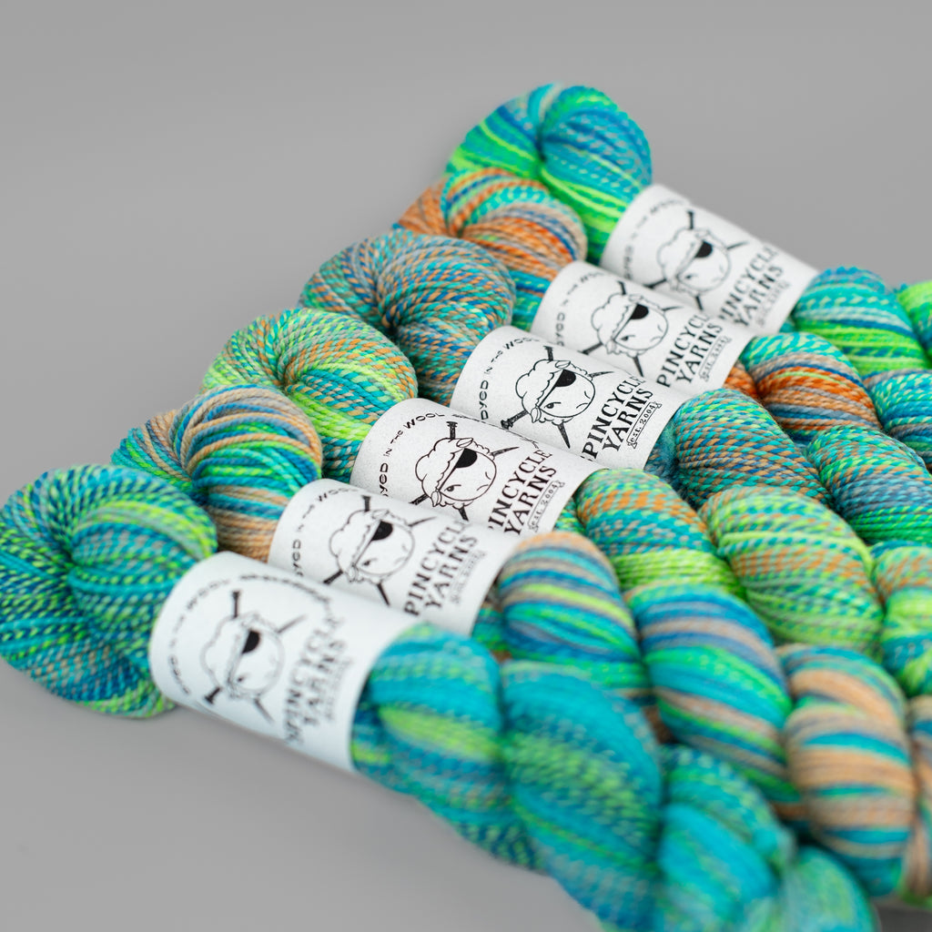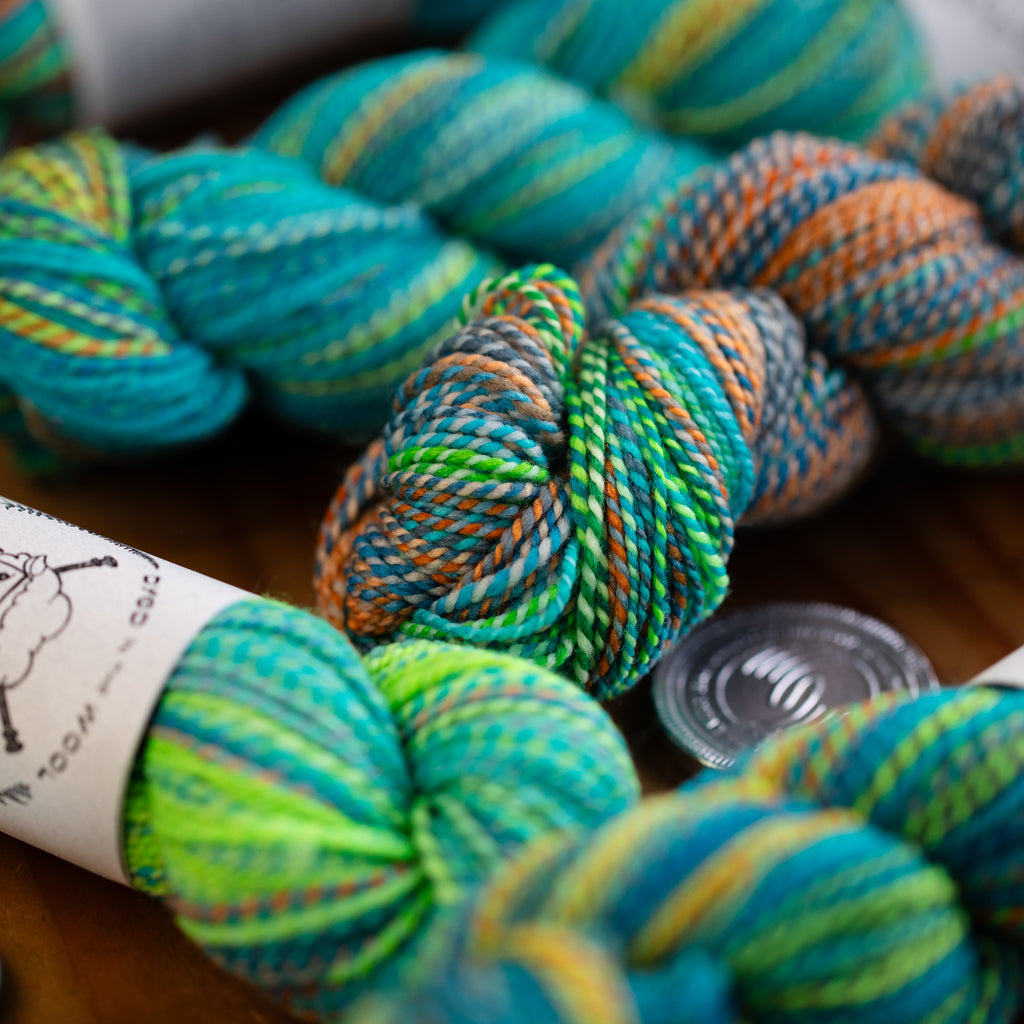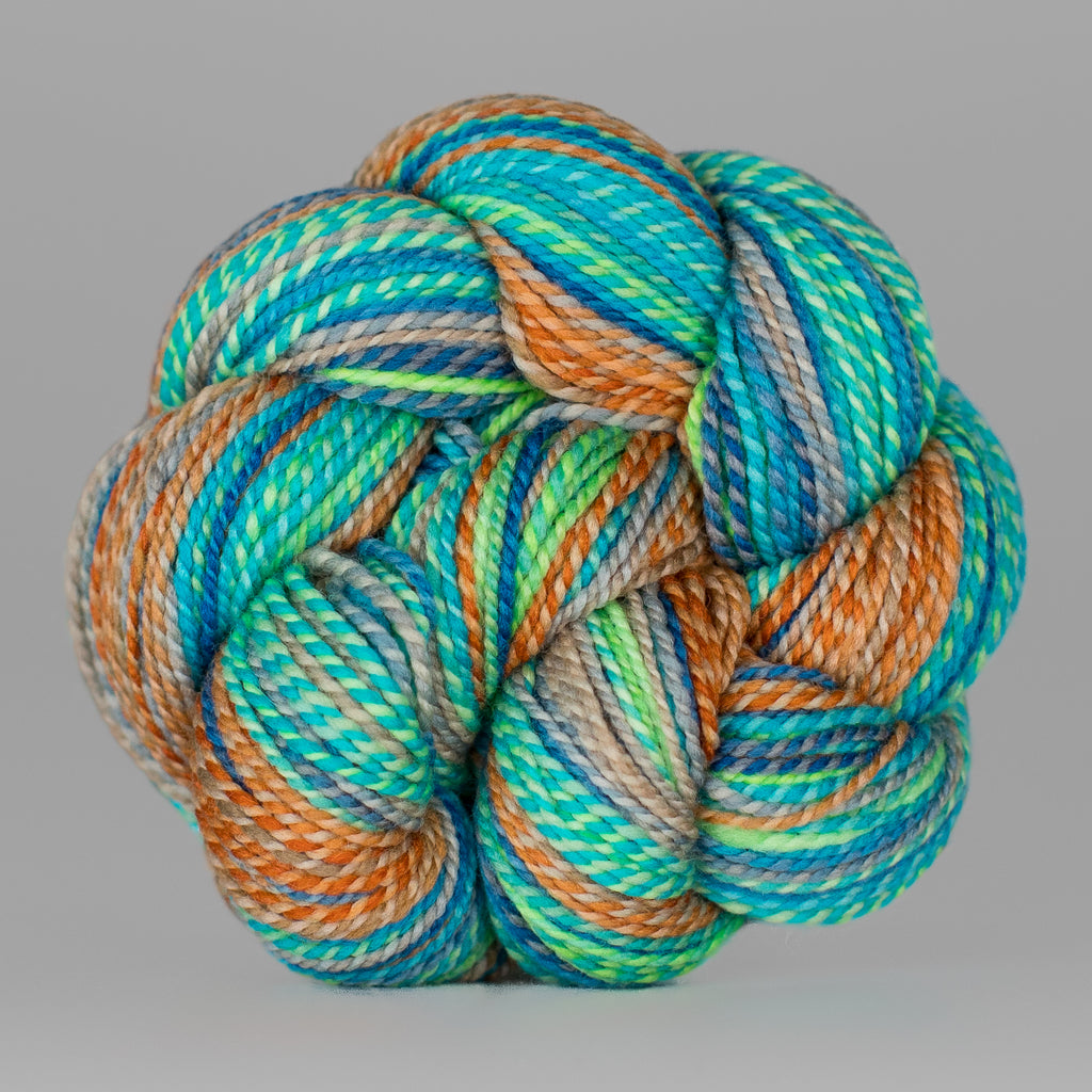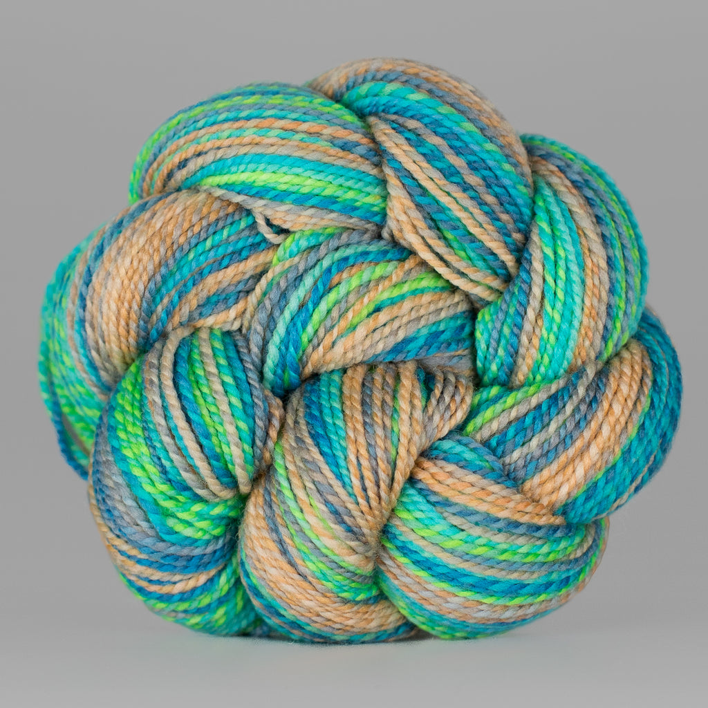 You will receive a skein from this colorway, but not the exact skein pictured. • Due to our “dyed in the wool” process, each skein we produce is unique, even within a dyelot. • If you have specific color preferences, please leave a note in the box at checkout. • We recommend buying your entire yardage requirement for your project in the same transaction, so that we can hand select skeins that match.