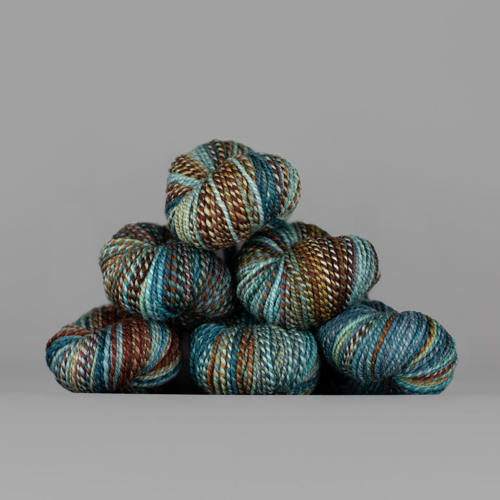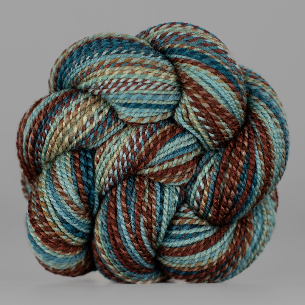 You will receive a skein from this colorway, but not the exact skein pictured. • Due to our “dyed in the wool” process, each skein we produce is unique, even within a dyelot. • If you have specific color preferences, please leave a note in the box at checkout. • We recommend buying your entire yardage requirement for your project in the same transaction, so that we can hand select skeins that match.
