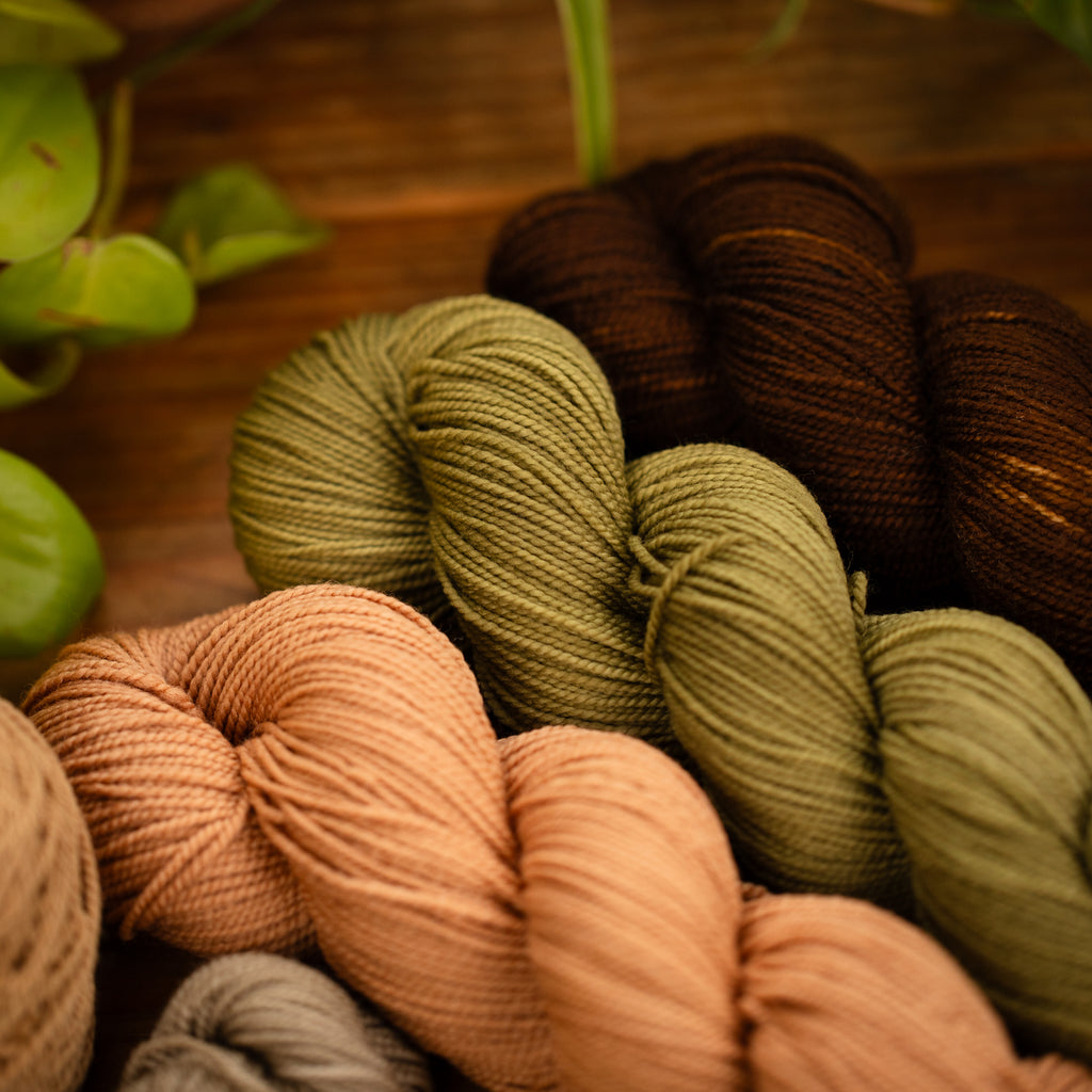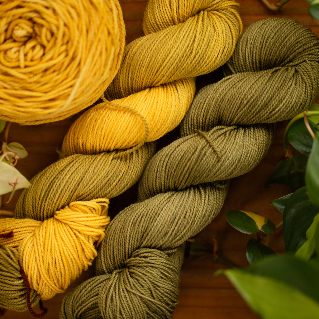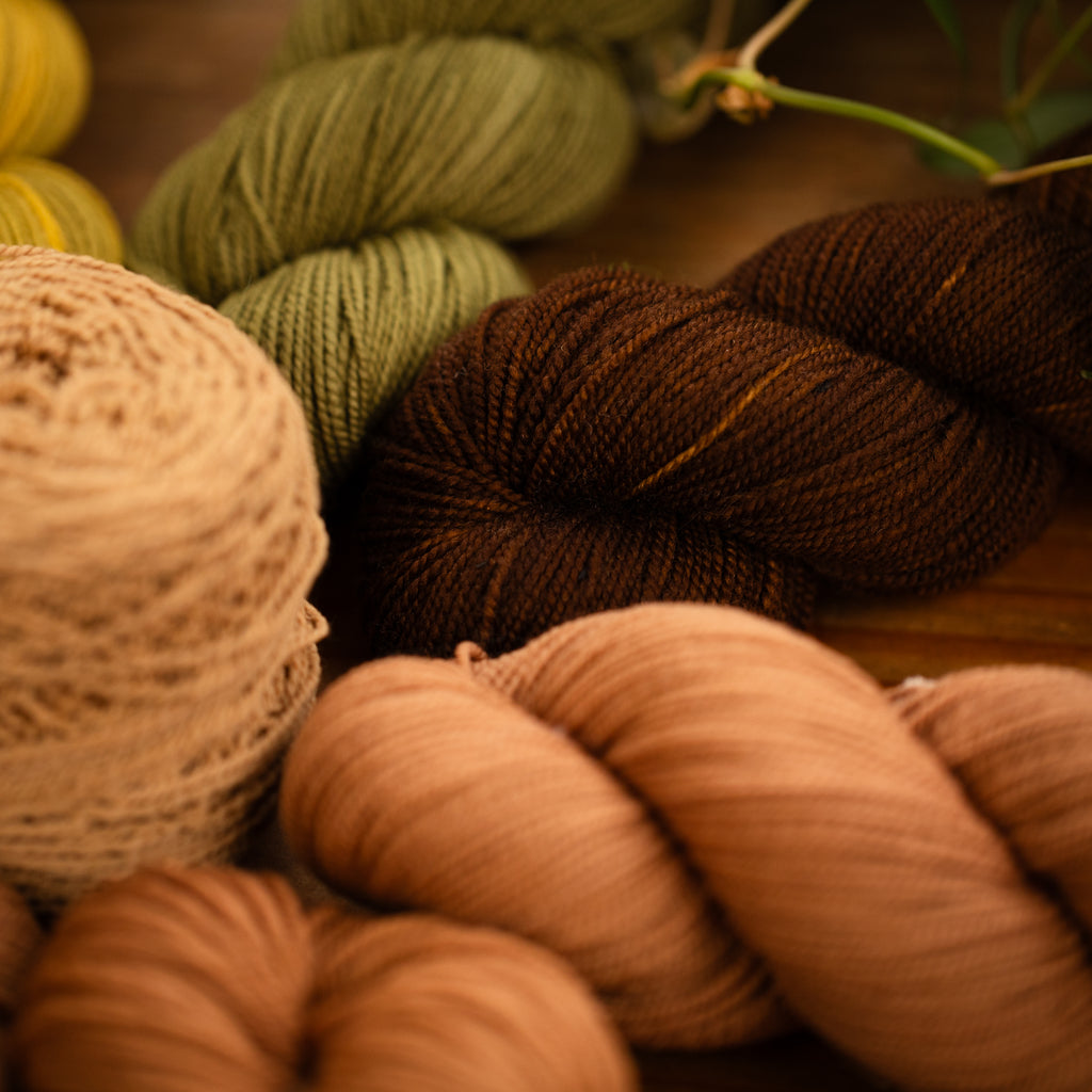 Speaking of which...wondering what to do with your newly acquired Spin Spun skeins? Some of the examples here were dyed naturally by our one of our amazing millers, Rei, with mushrooms (that she harvested herself!) and avocado skins and pits! There are so many options for dyeing to create your very own unique skeins.