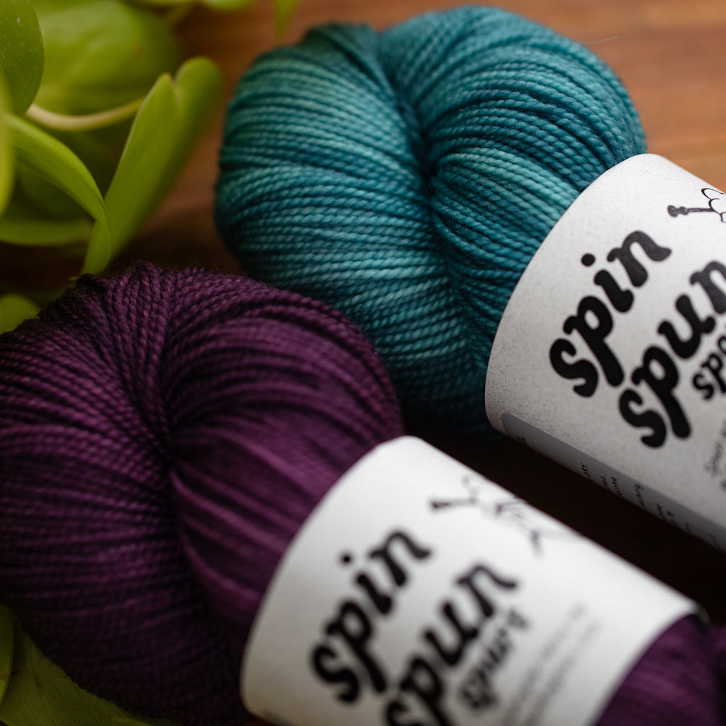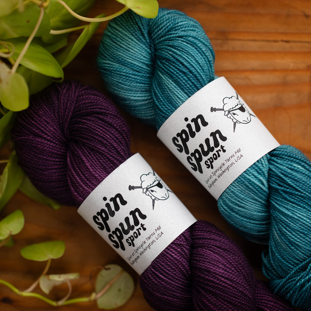 SPIN SPUN • sport weight • 100% superwashed American wool • 400 yards per skein • hand wash cold, lay flat to dry • MADE IN THE USA • SPUN IN WA