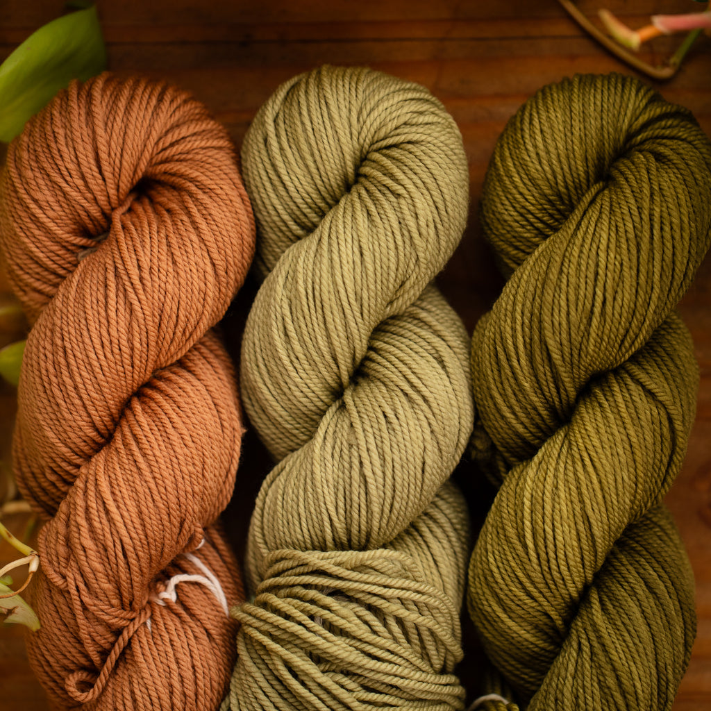 Well, Spin Spun Worsted is the very same base that we mill for our friends to dye, now available to you! The fiber content and construction is exactly the same as Dream State, which makes it that soft and squishy 3-ply yarn you know and love. Dye your very own MC to pair perfectly with your favorite Dream State. Maybe a Framed sweater is in your future? These skeins are ideal for Abundant Earth's Wool Tincture Dye kits!