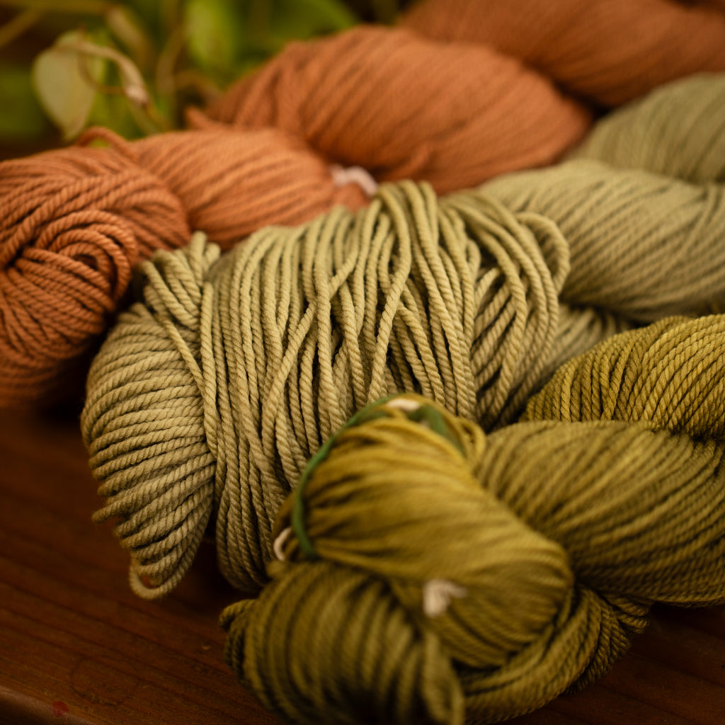 Speaking of which...wondering what to do with your newly acquired Spin Spun skeins? The examples here were dyed naturally by our one of our amazing millers, Rei, with mushrooms (that she harvested herself!) and avocado skins and pits! There are so many options for dyeing to create your very own unique skeins.