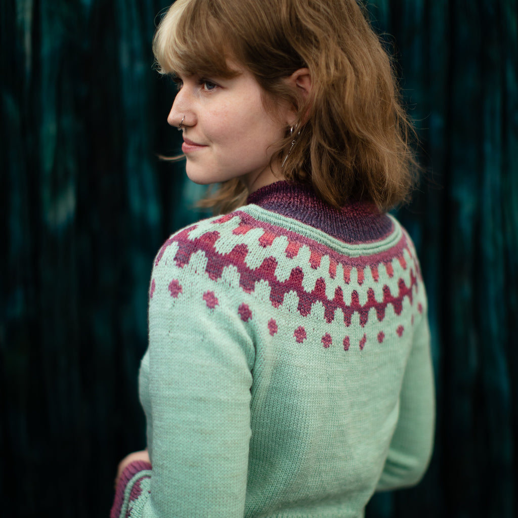 For high contrast colorwork, we recommend steam blocking to avoid color transfer. • Some dyes are notoriously difficult to set, and may exhaust some color even after our final wash. • Please keep this in mind if you are combining any hand dyed yarn with a light color in the same project. • If you plan to combine a hand dyed yarn, especially a very saturated colorway, with a lighter yarn, we suggest you test your darker skeins for possible color transfer by soaking them first. • To wash your knitwear, a quick cold water dip with a no-rinse wool wash is recommended.