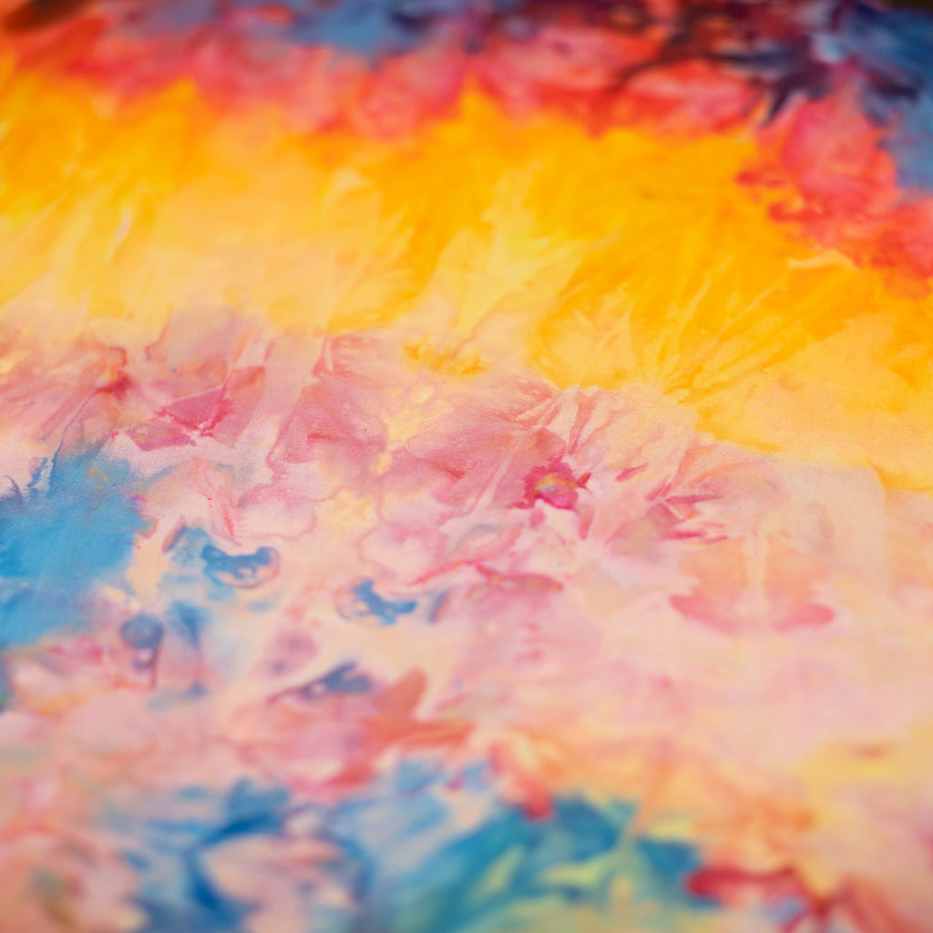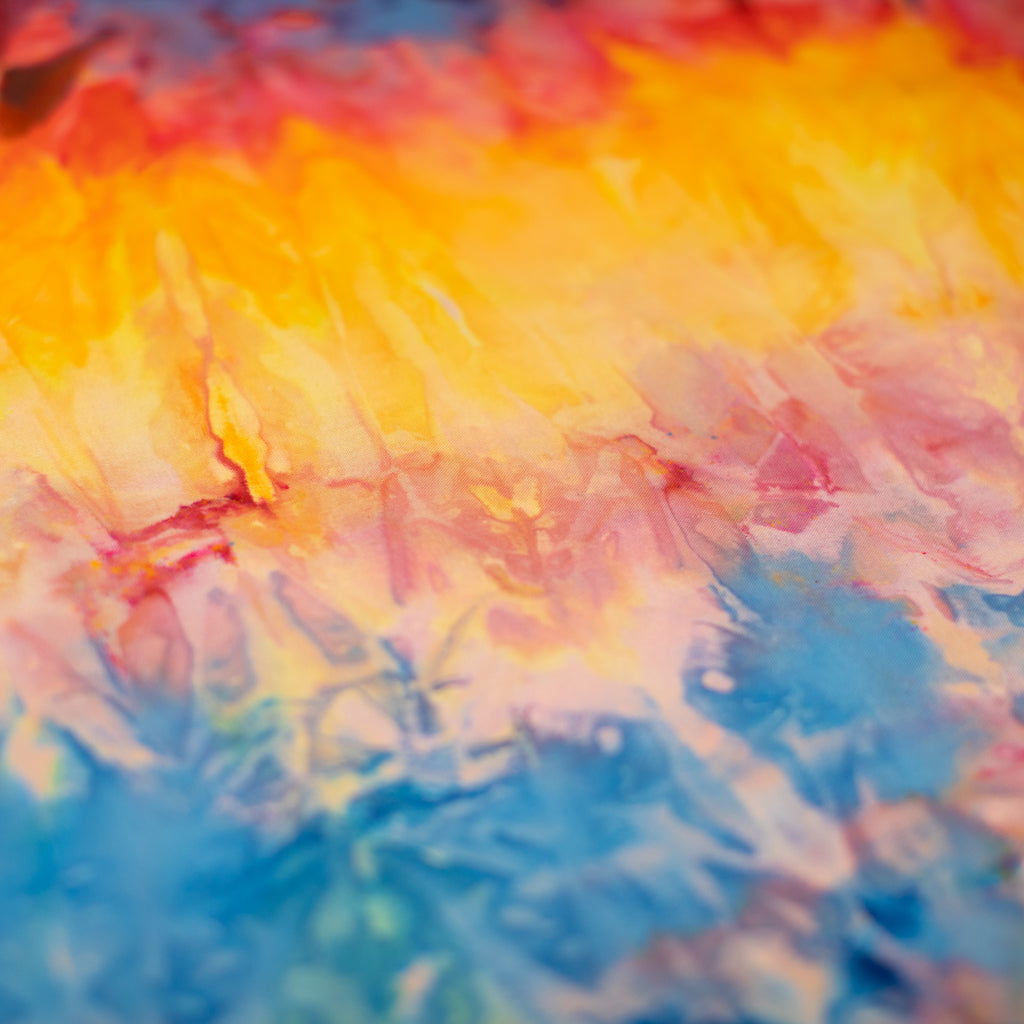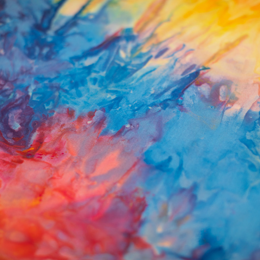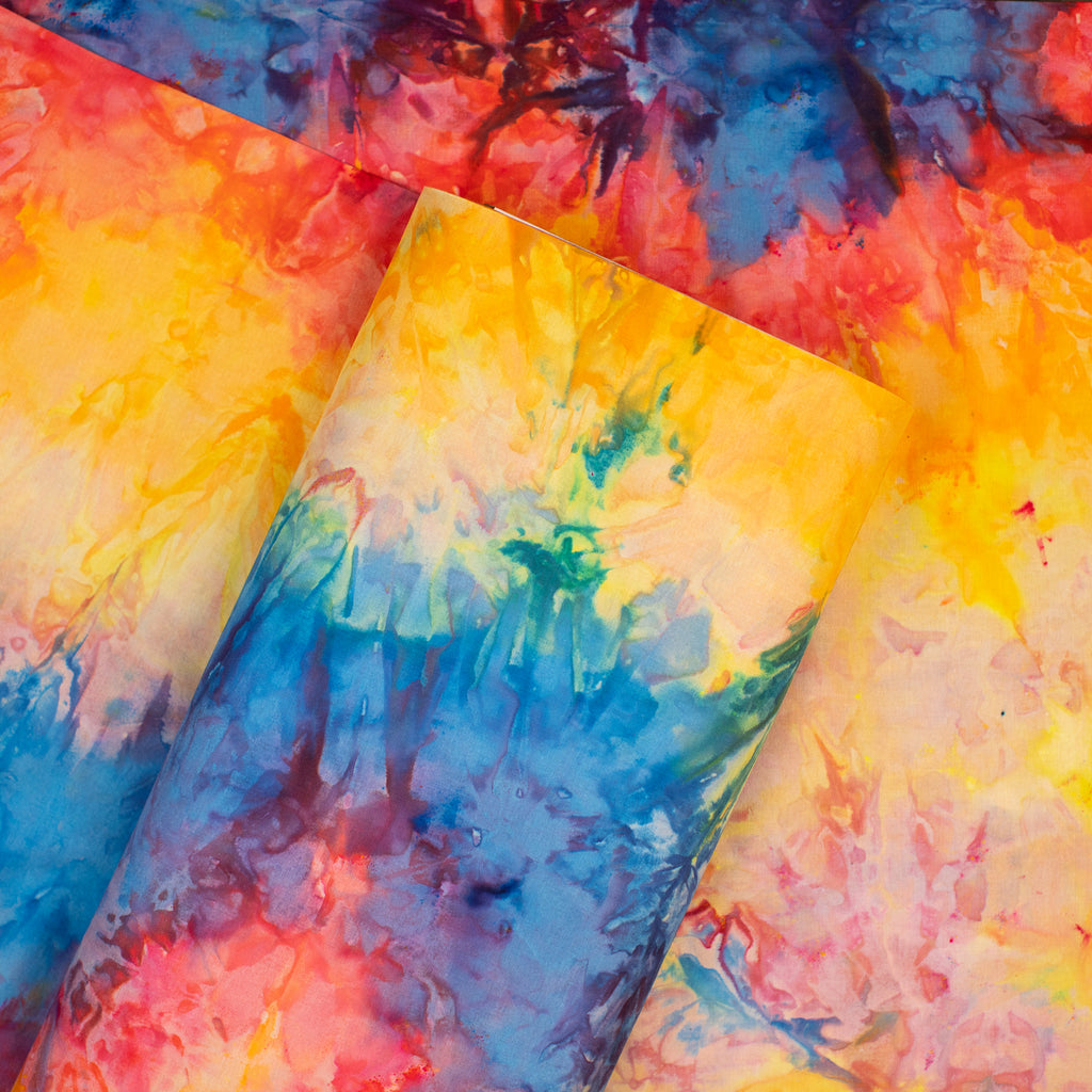 Similarly to our yarn, you will receive a cut of fabric from this bolt, but not the exact pictured. Each inch of fabric we ice dye is unique! We recommend buying your entire yardage requirement for your project all at once, as the fabric is one of a kind.