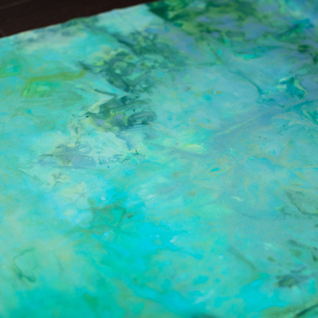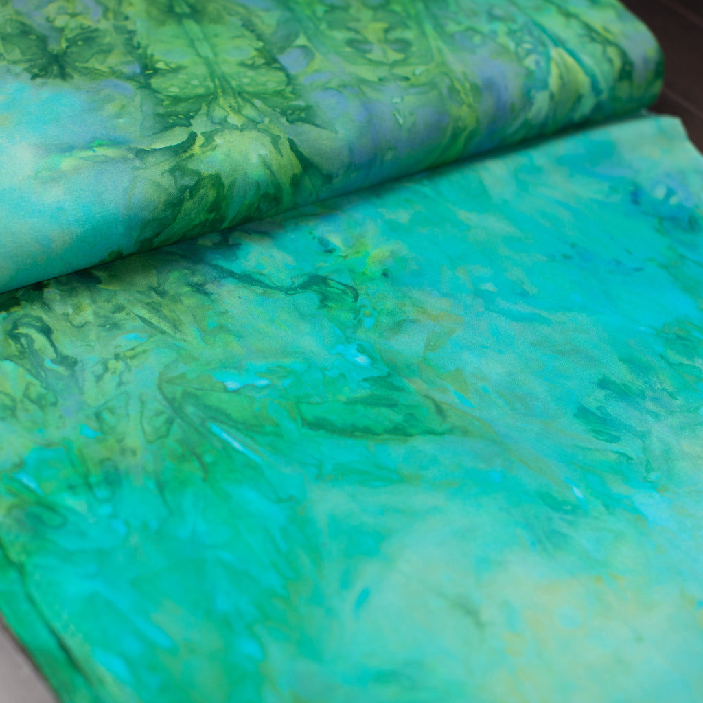 Similarly to our yarn, you will receive a cut of fabric from this bolt, but not the exact pictured. Each inch of fabric we ice dye is unique! We recommend buying your entire yardage requirement for your project all at once, as the fabric is one of a kind.