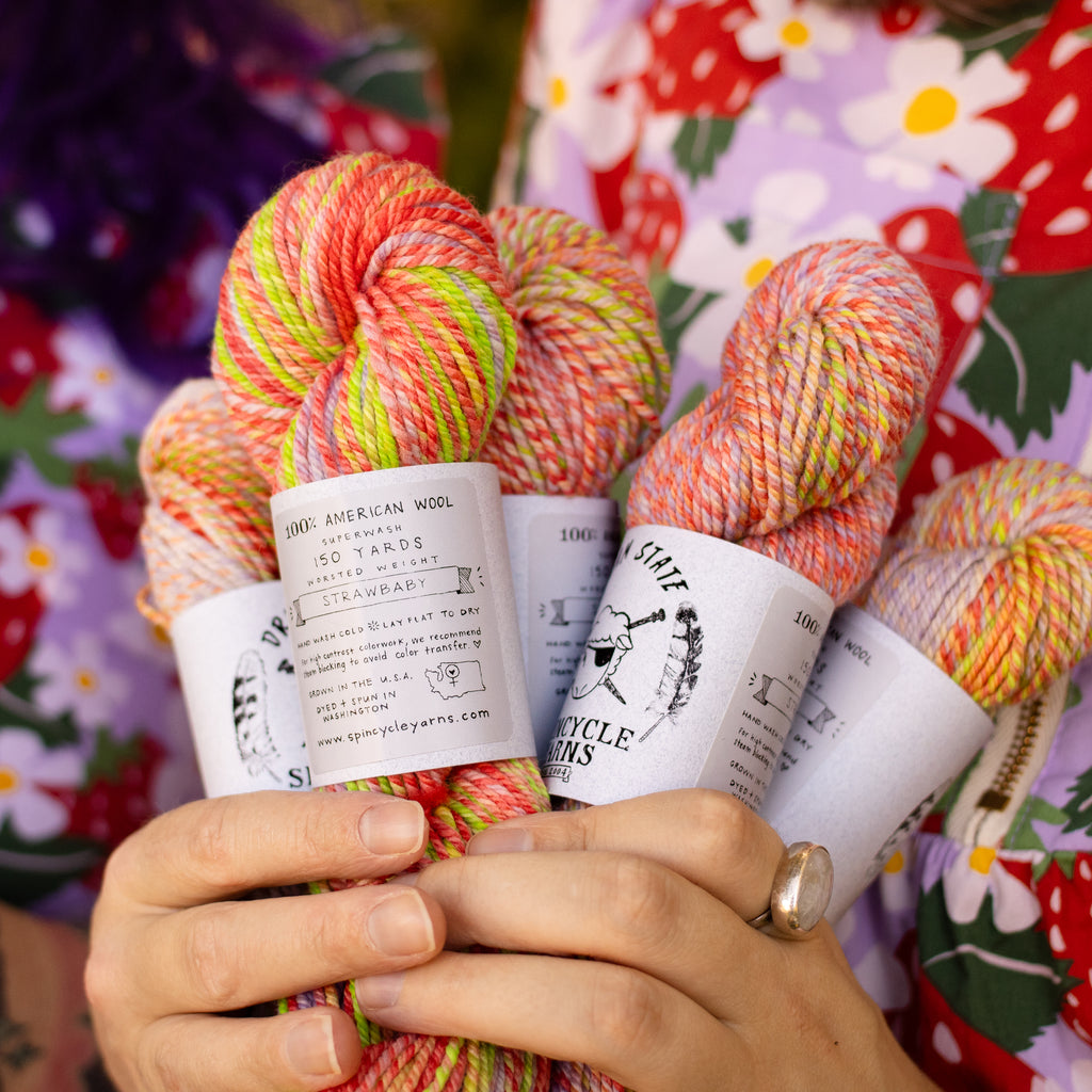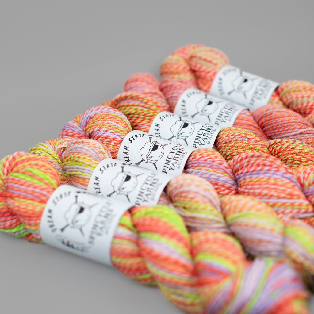 DREAM STATE • worsted weight • 100% superwashed American wool • 150 yards per skein • hand wash cold, lay flat to dry • GROWN IN THE USA • DYED & SPUN IN WASHINGTON
