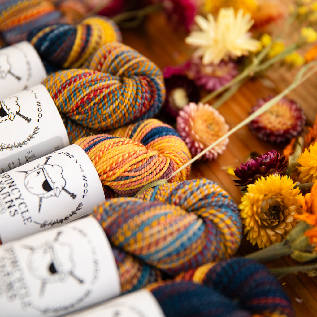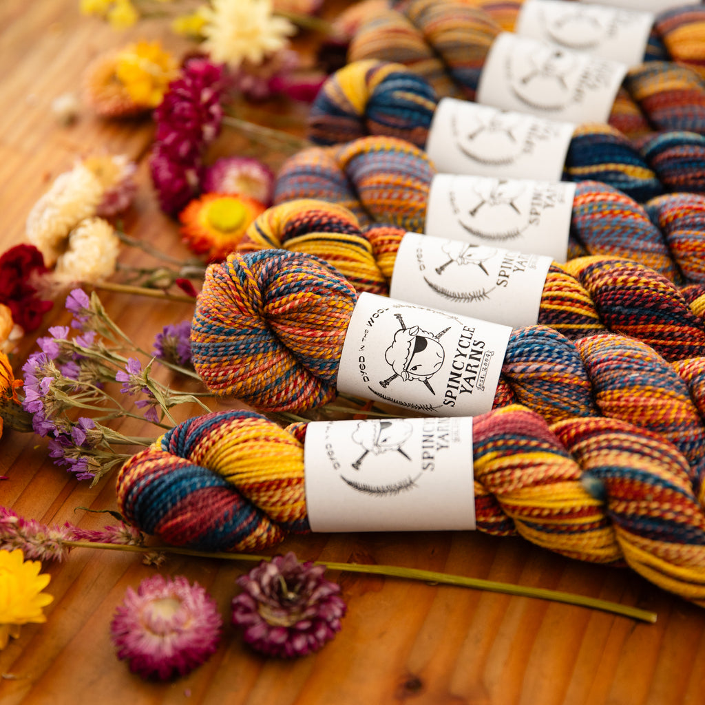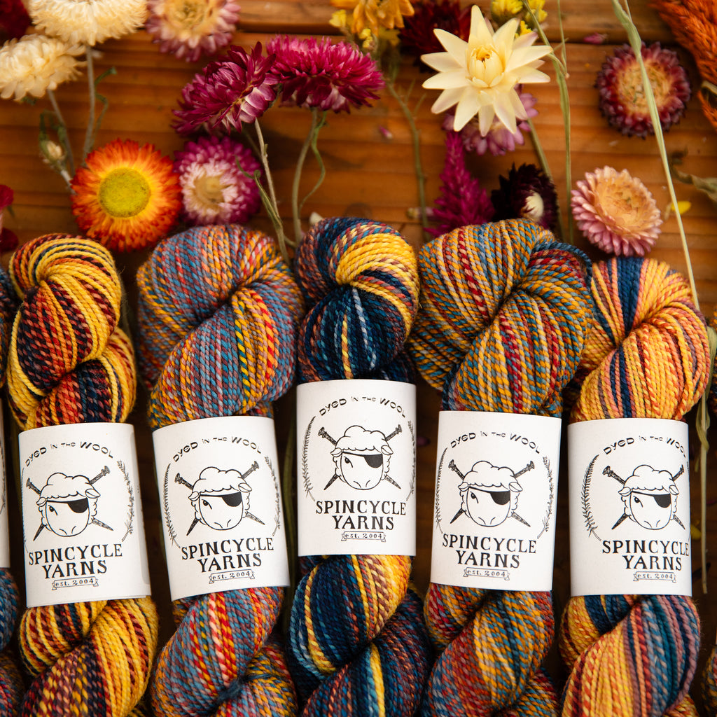 DYED IN THE WOOL • sport weight • 100% superwashed American wool • 200 yards per skein • hand wash cold, lay flat to dry • GROWN IN THE USA • DYED & SPUN IN WASHINGTON