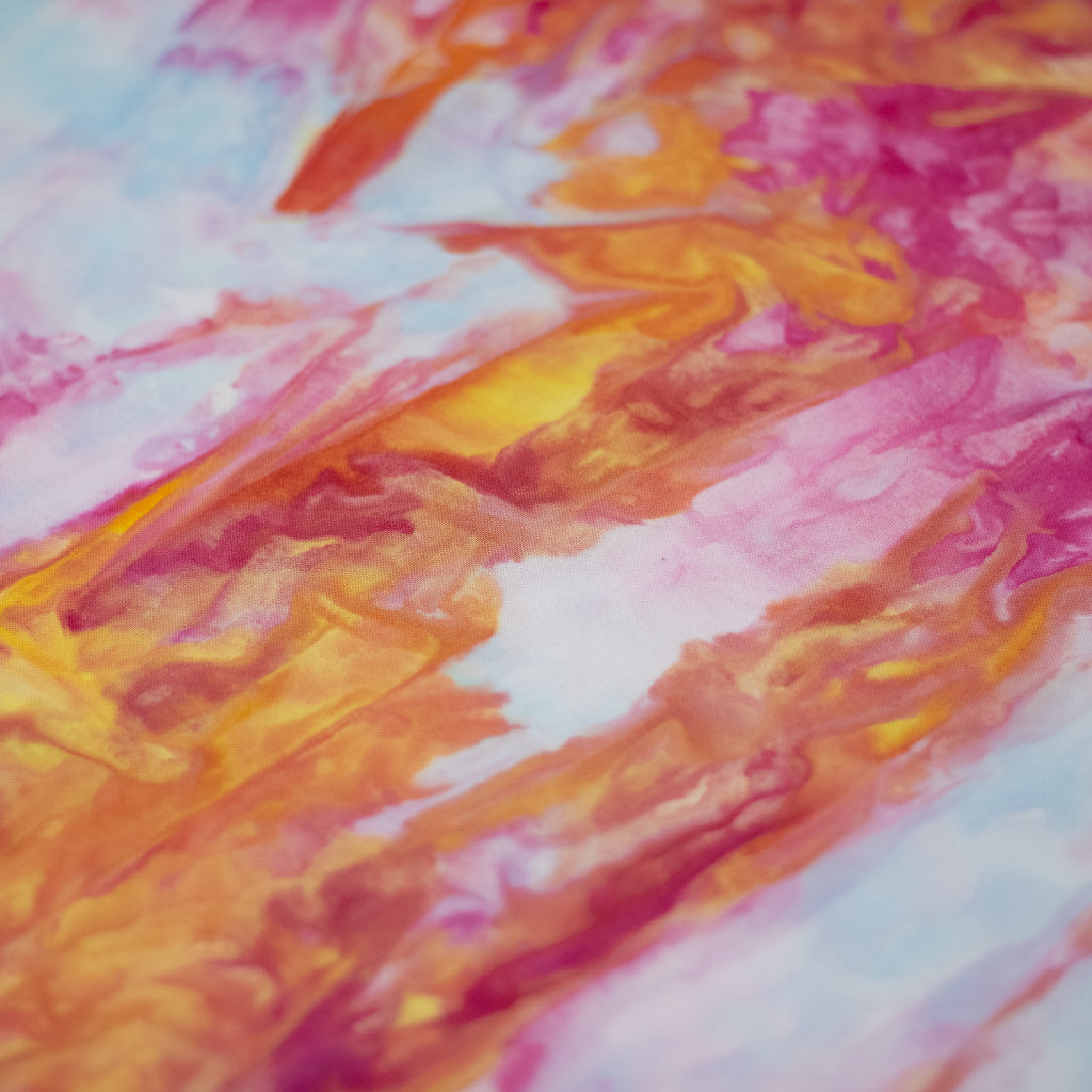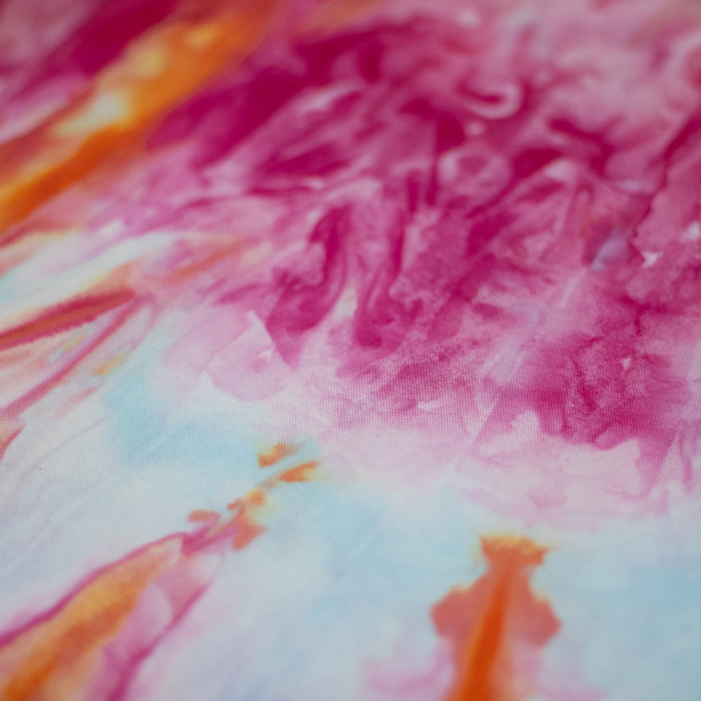 Similarly to our yarn, you will receive a cut of fabric from this bolt, but not the exact pictured. Each inch of fabric we ice dye is unique! We recommend buying your entire yardage requirement for your project all at once, as the fabric is one of a kind.