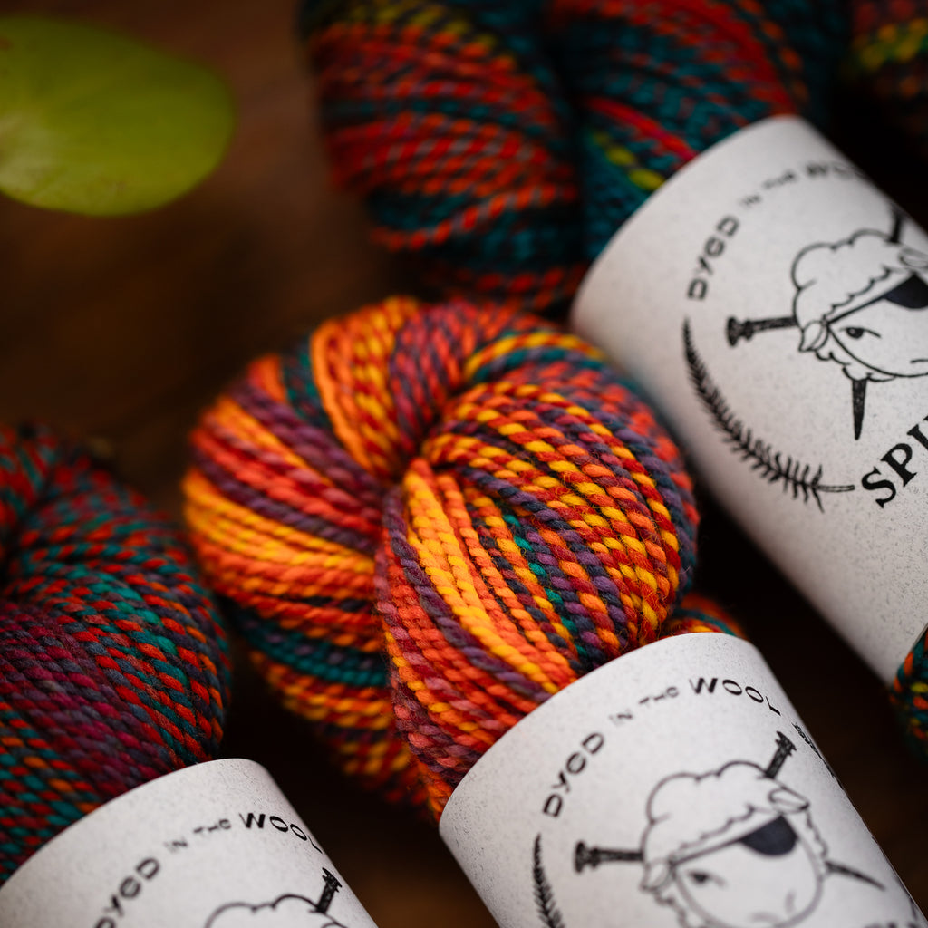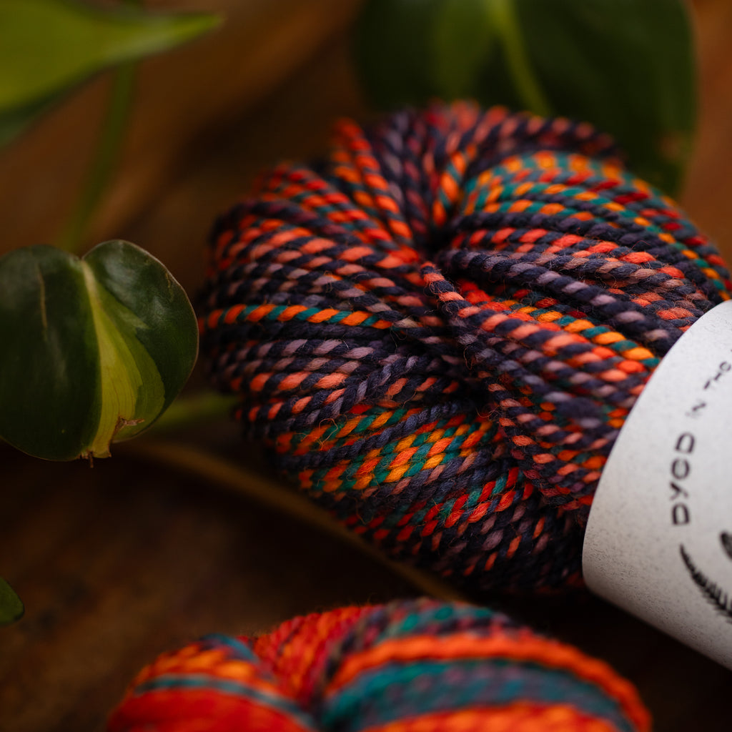 You will receive a skein from this colorway, but not the exact skein pictured. • Due to our “dyed in the wool” process, each skein we produce is unique, even within a dyelot. • If you have specific color preferences, please leave a note in the box at checkout. • We recommend buying your entire yardage requirement for your project in the same transaction, so that we can hand select skeins that match.