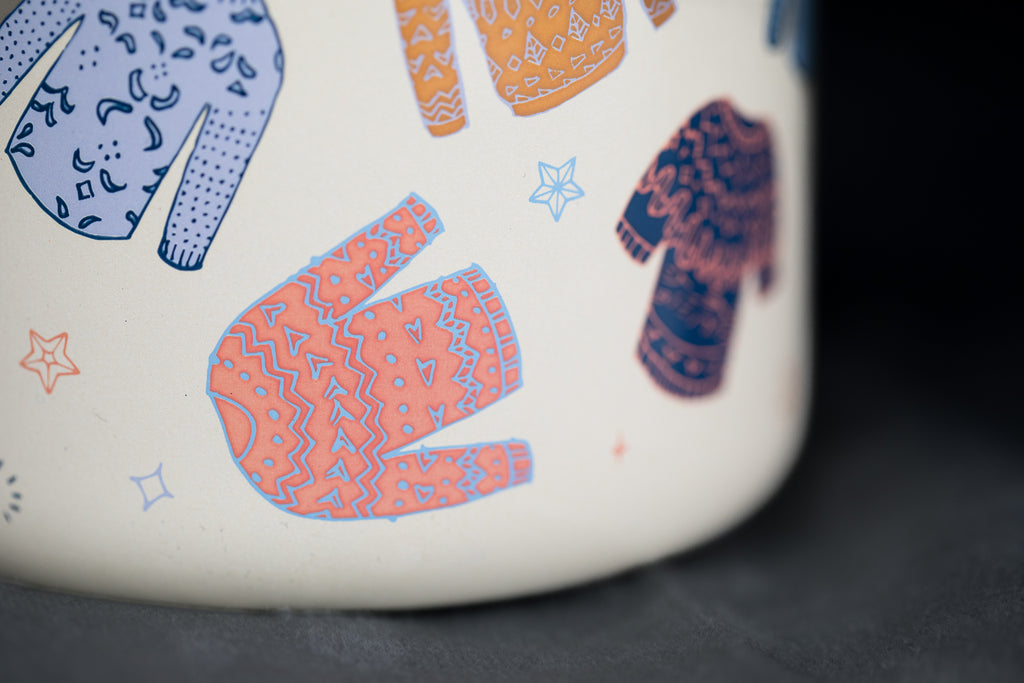 Inspired by some of our favorite designs featuring Spincycle, she illustratedĀ tiny sweaters and created this adorable mug! See if you can spot your favorite Spincycle sweater here!
