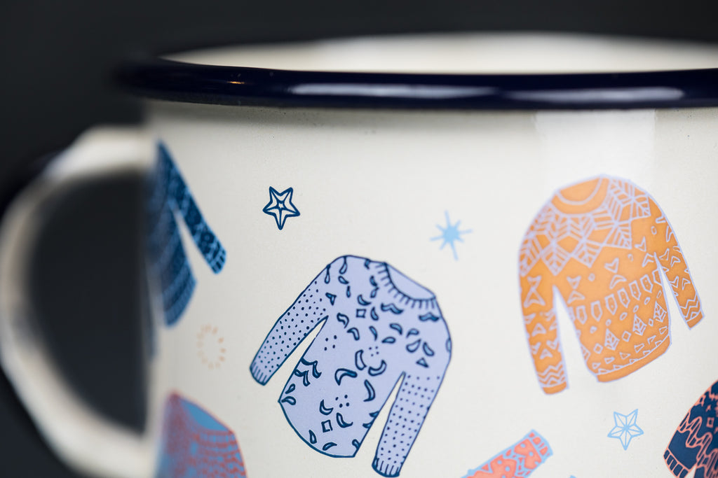 It's been a liiiiiiiittle longer than we promised, but we had so many requests for a second round of our enamel mugs (yes, yes, the first ones are from nearly five years ago... where did the time go?) that we decided to get our lives together and design a new one. And to make up for lost time, we went ahead and made two!