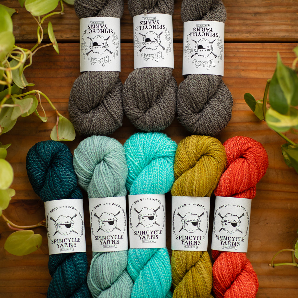 DYED IN THE WOOL • sport weight • 100% superwash American wool • 200 yards per skein • hand wash cold, lay flat to dry • GROWN IN THE USA • DYED & SPUN IN WASHINGTON