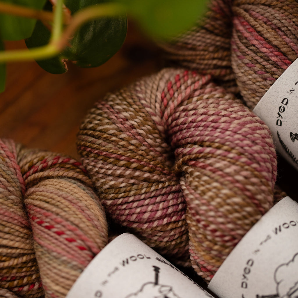 You will receive a skein from this colorway, but not the exact skein pictured. • Due to our “dyed in the wool” process, each skein we produce is unique, even within a dyelot. • If you have specific color preferences, please leave a note in the box at checkout. • We recommend buying your entire yardage requirement for your project in the same transaction, so that we can hand select skeins that match.