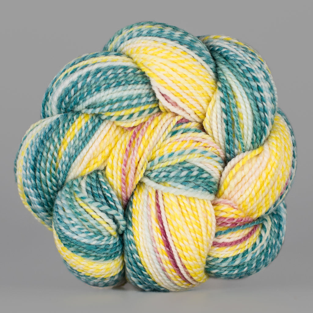 You will receive a skein from this colorway, but not the exact skein pictured. • Due to our “dyed in the wool” process, each skein we produce is unique, even within a dyelot. • If you have specific color preferences, please leave a note in the box at checkout. • We recommend buying your entire yardage requirement for your project in the same transaction, so that we can hand select skeins that match.