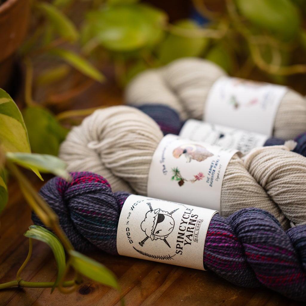 SPINSTER'S DAUGHTER • sport weight • 100% superwashed American wool • 300 yards per skein • hand wash cold, lay flat to dry • MADE IN THE USA FROM SHEEP TO SKEIN