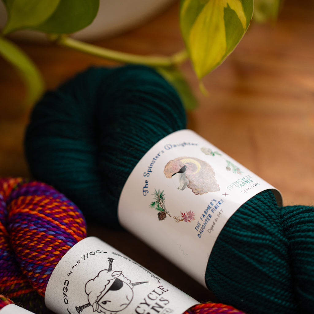 DYED IN THE WOOL • sport weight • 100% superwashed American wool • 200 yards per skein • hand wash cold, lay flat to dry • MADE IN THE USA FROM SHEEP TO SKEIN