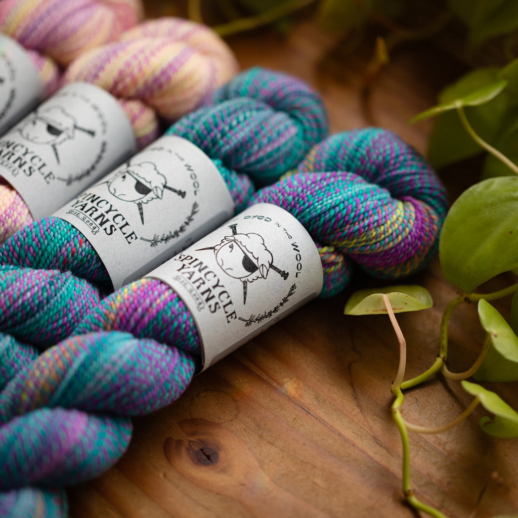You will receive skeins from this colorway, but not the exact skeins pictured. • Due to our “dyed in the wool” process, each skein we produce is unique, even within a dyelot.