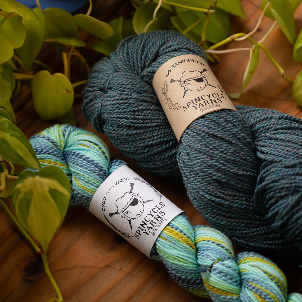 METAMORPHIC • 50% recycled wool from production waste/50% new merino wool • 400 yards per skein • hand wash, lay flat to dry • MADE IN THE USA
