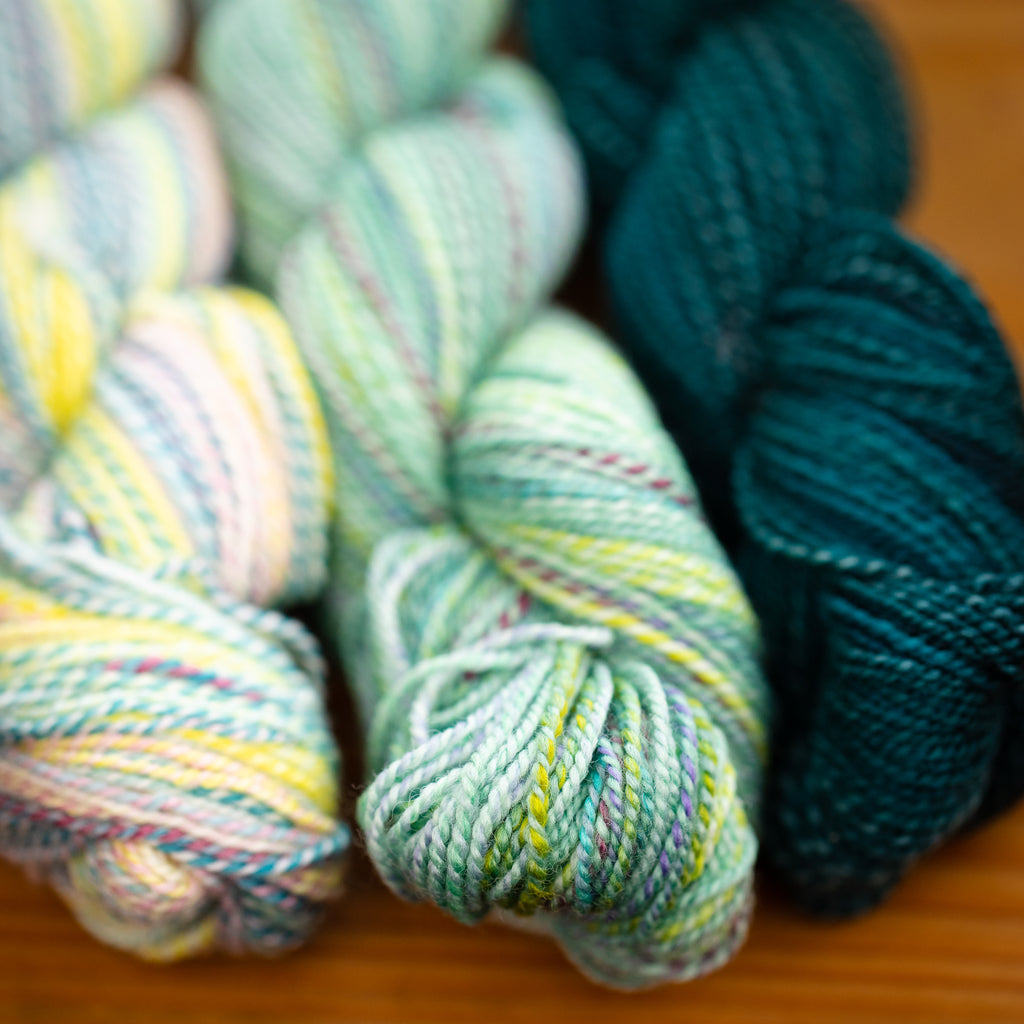 Hi there, knitter friends! We had no idea that so many of y'all were still jonesing for the original colors of The Shift Cowl! For your one-click convenience, this listing is for one of each of the fresh-off-the-spinners colorways, the original The Shift Cowl trio: The Castle, The Meadows, & Leith.