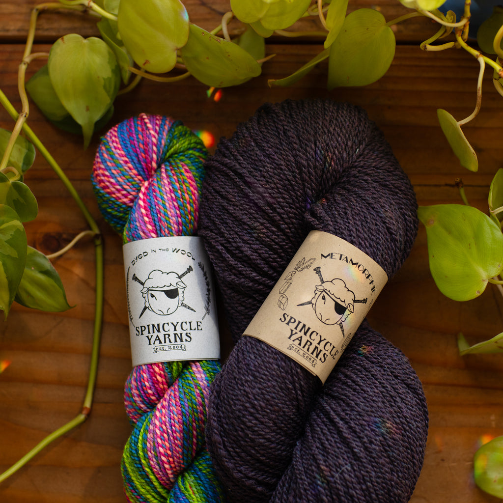 CC: Dyed in The Wool (100% American wool) 200 yards per skein; 1 skein in Side Quest