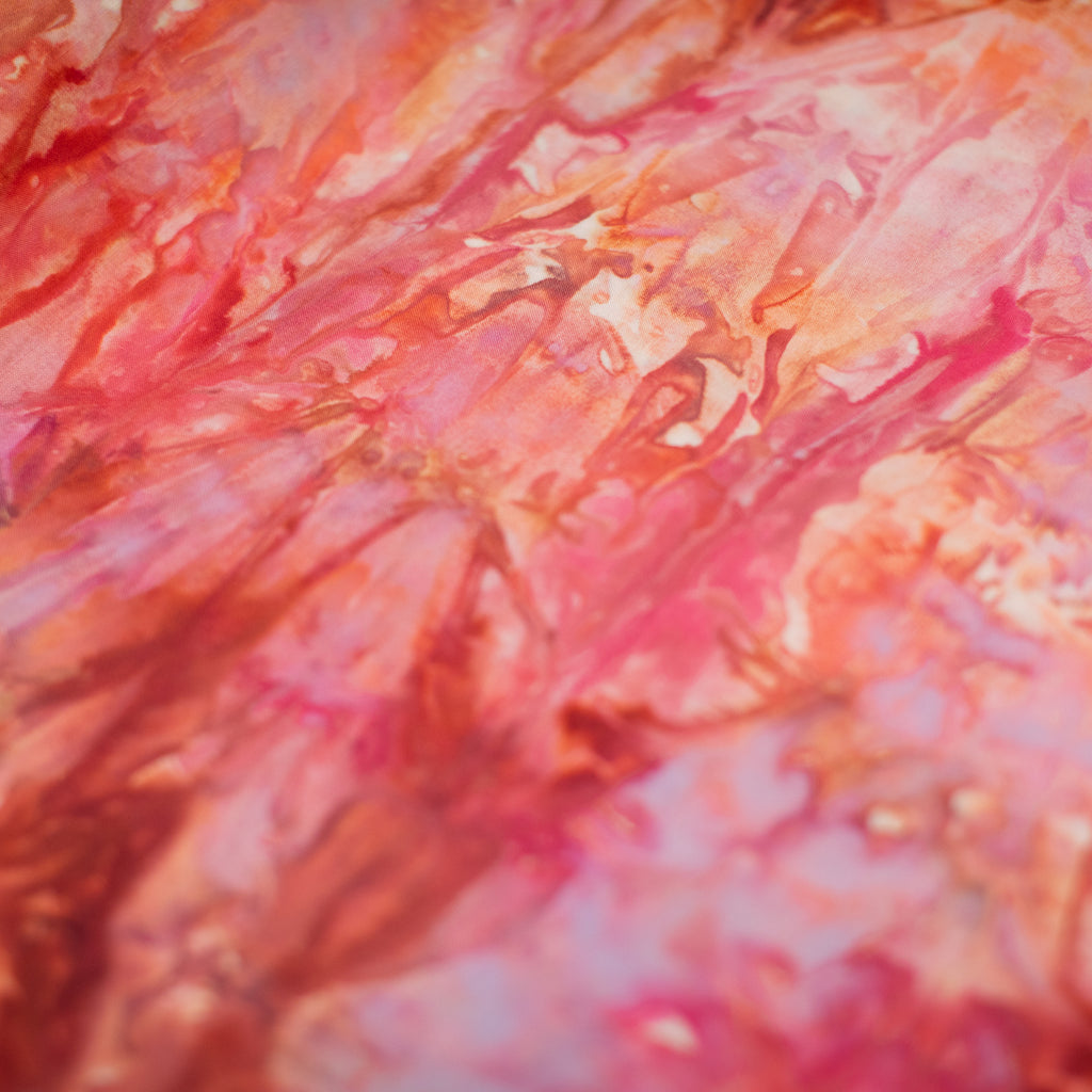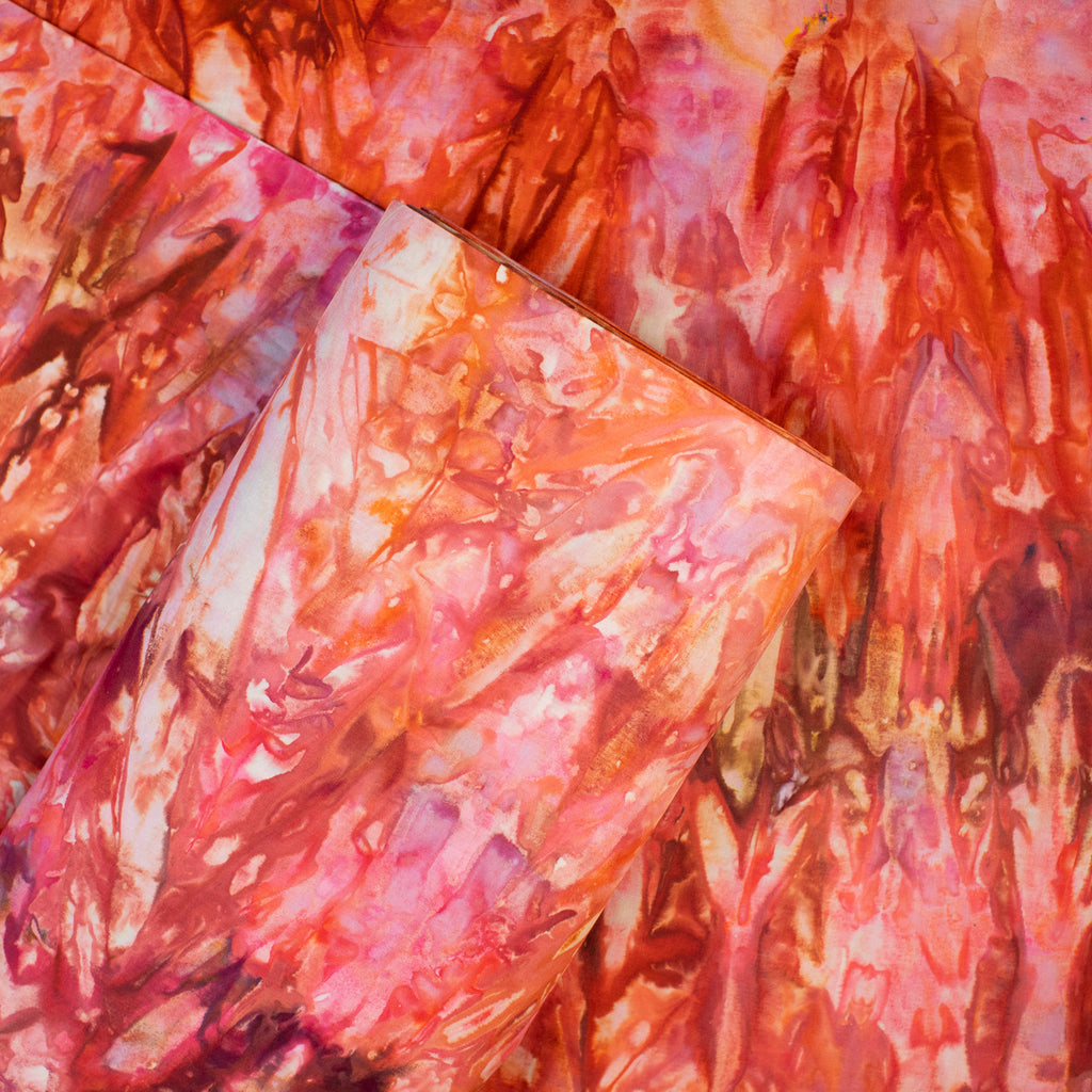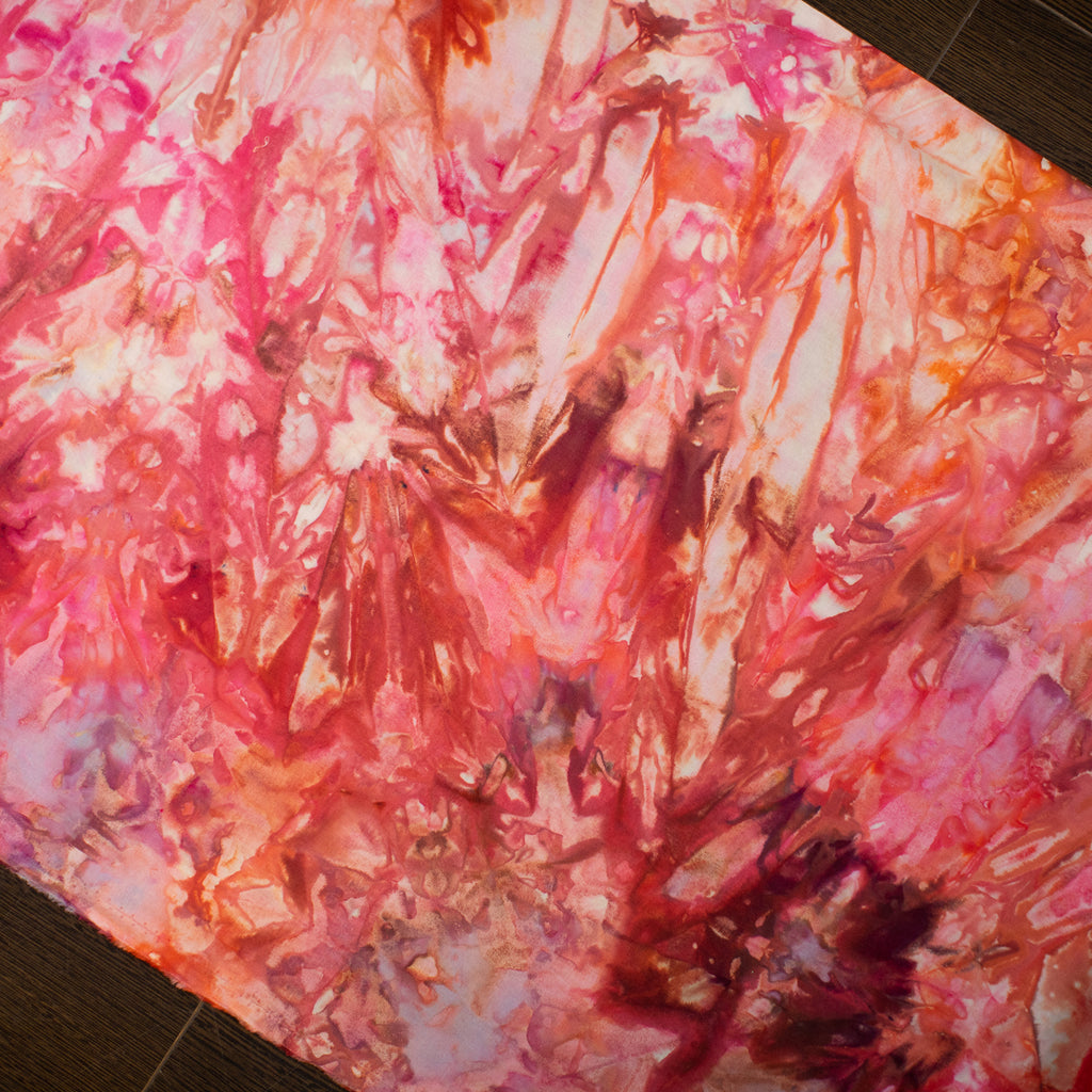Similarly to our yarn, you will receive a cut of fabric from this bolt, but not the exact pictured. Each inch of fabric we ice dye is unique! We recommend buying your entire yardage requirement for your project all at once, as the fabric is one of a kind.
