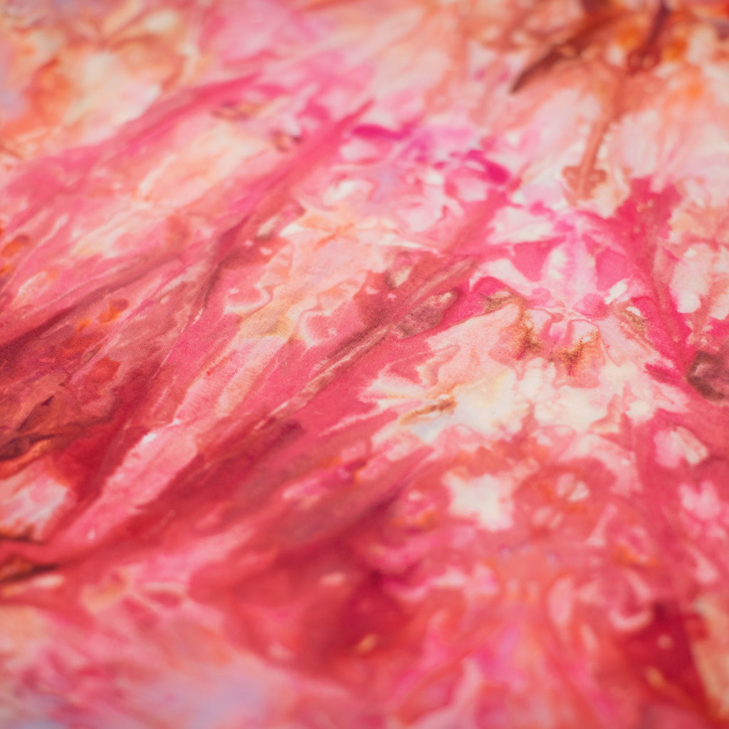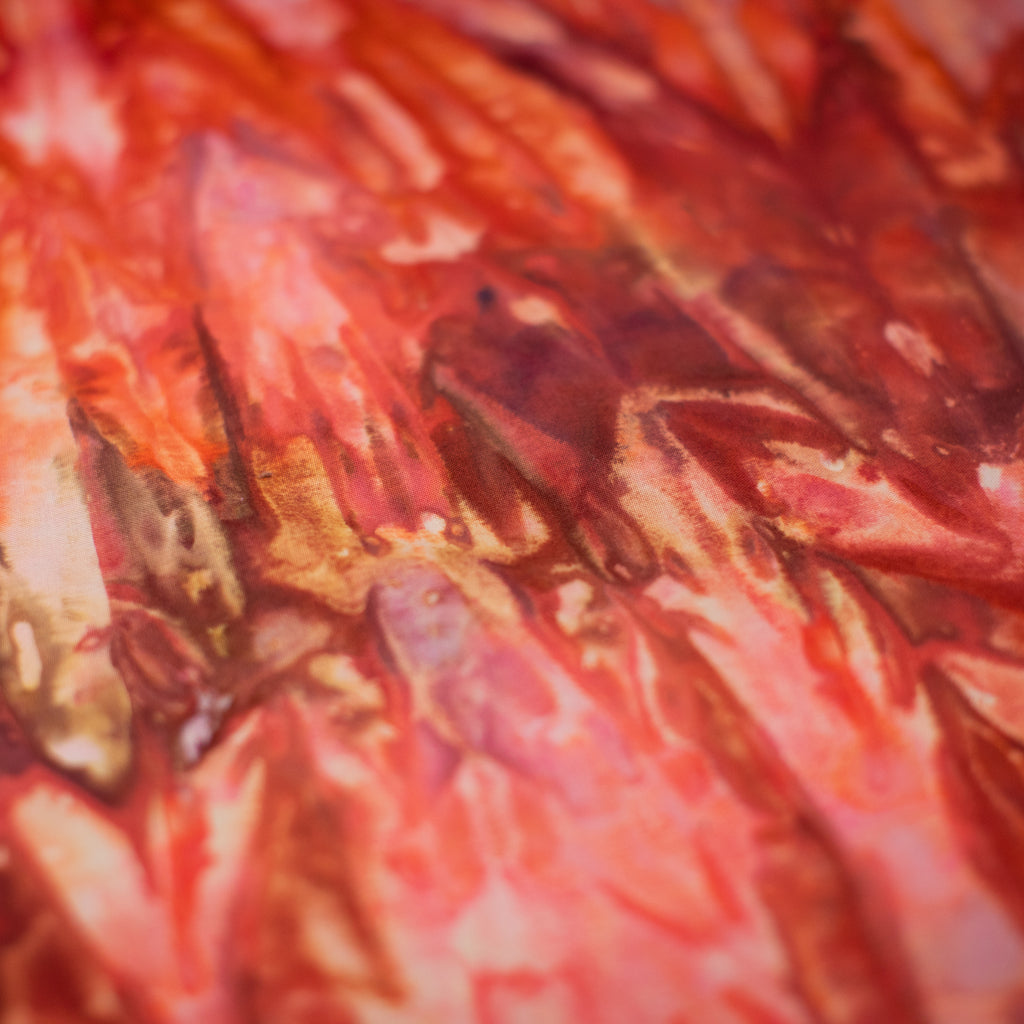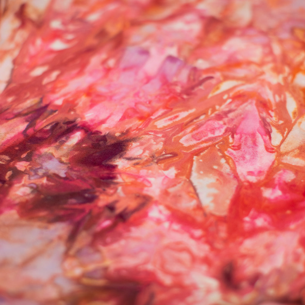 Similarly to our yarn, you will receive a cut of fabric from this bolt, but not the exact pictured. Each inch of fabric we ice dye is unique! We recommend buying your entire yardage requirement for your project all at once, as the fabric is one of a kind.