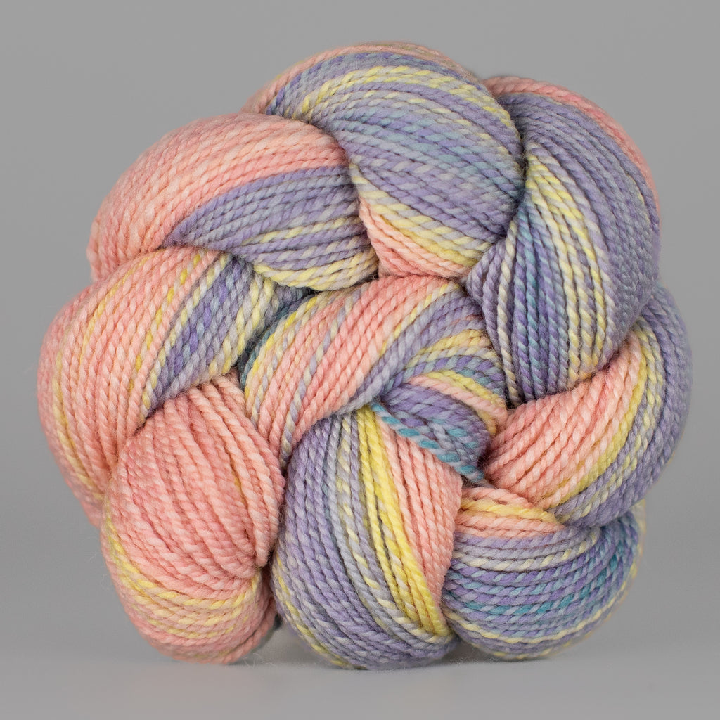 You will receive a skein from this colorway, but not the exact skein pictured. • Due to our “dyed in the wool” process, each skein we produce is unique, even within a dyelot. • If you have specific color preferences, please leave a note in the box at checkout. • We recommend buying your entire yardage requirement for your project in the same transaction, so that we can hand select skeins that match.