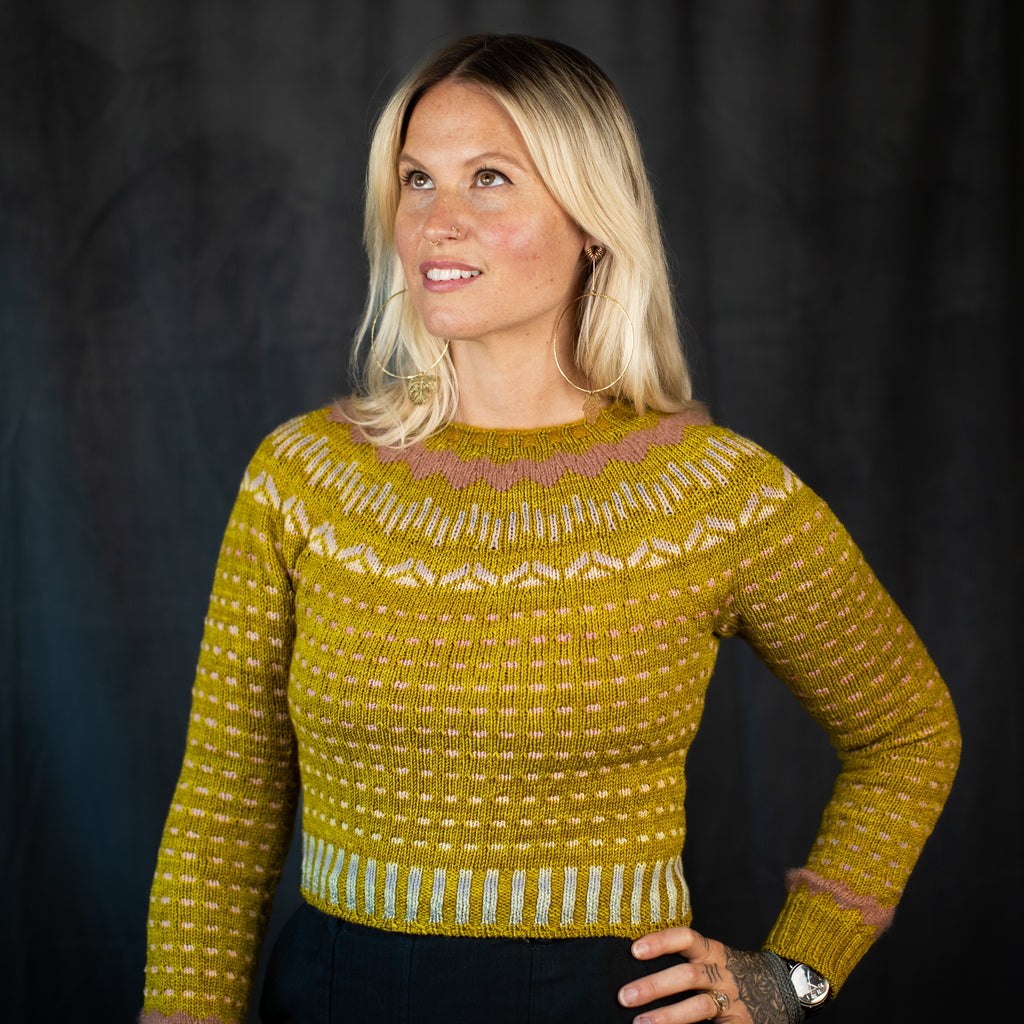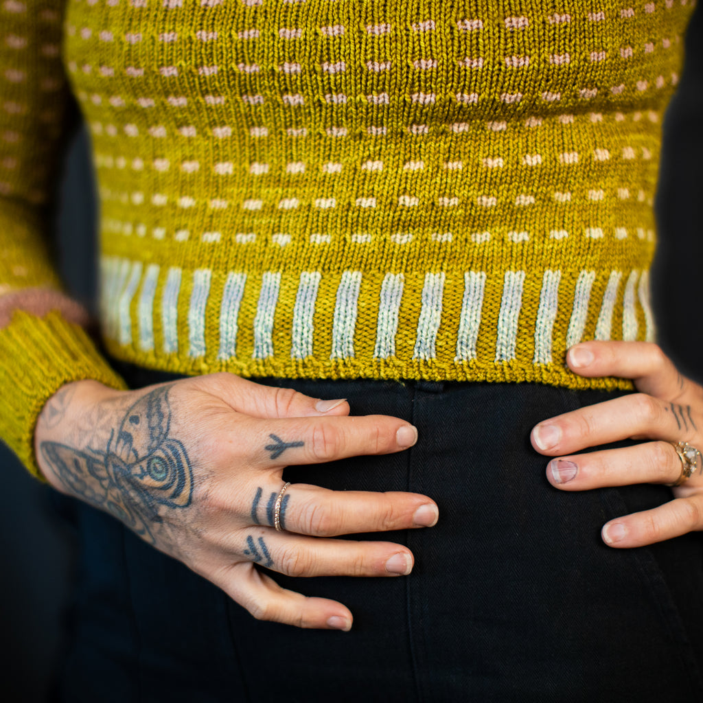 For high contrast colorwork, we recommend steam blocking to avoid color transfer. • Some dyes are notoriously difficult to set, and may exhaust some color even after our final wash. • Please keep this in mind if you are combining any hand dyed yarn with a light color in the same project. • If you plan to combine a hand dyed yarn, especially a very saturated colorway, with a lighter yarn, we suggest you test your darker skeins for possible color transfer by soaking them first. • To wash your knitwear, a quick cold water dip with a no-rinse wool wash is recommended.