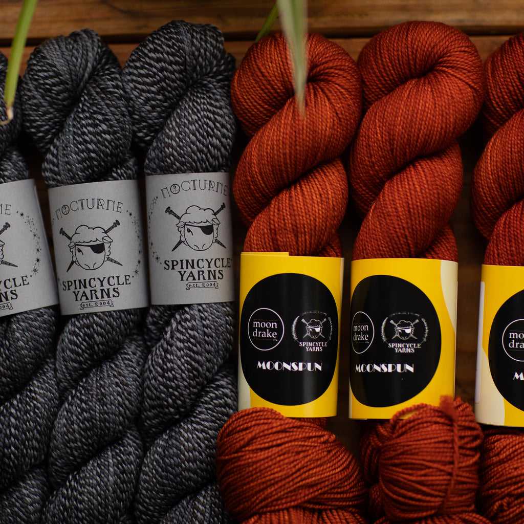 MOONSPUN • sport weight • 100% superwash American wool • 300 yards per skein • hand wash cold, lay flat to dry • MADE IN THE USA FROM SHEEP TO SKEIN