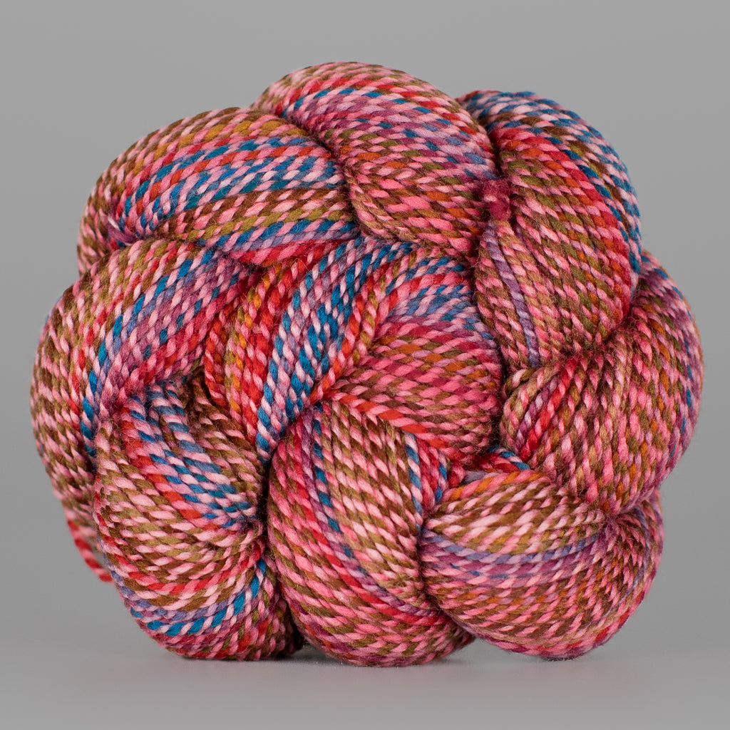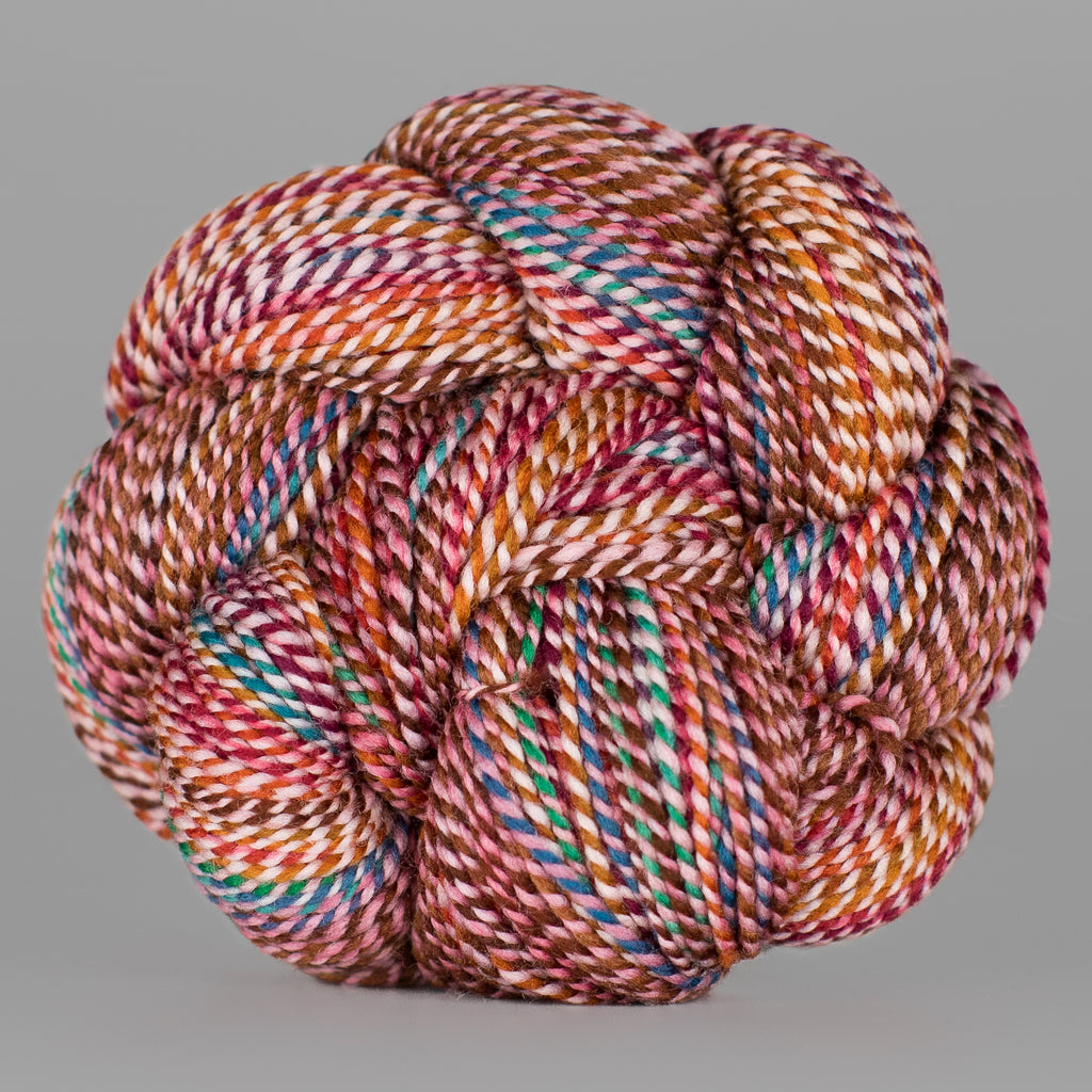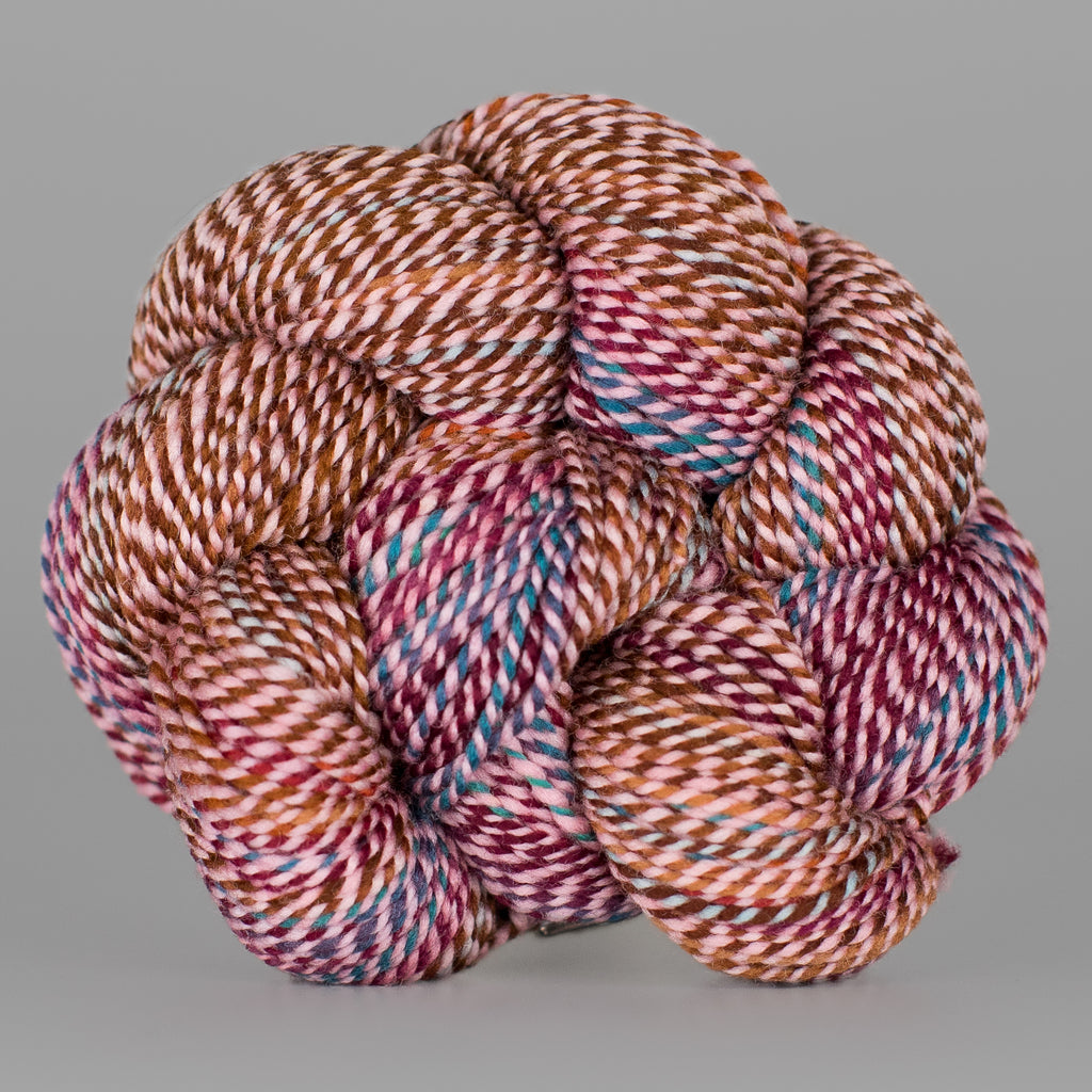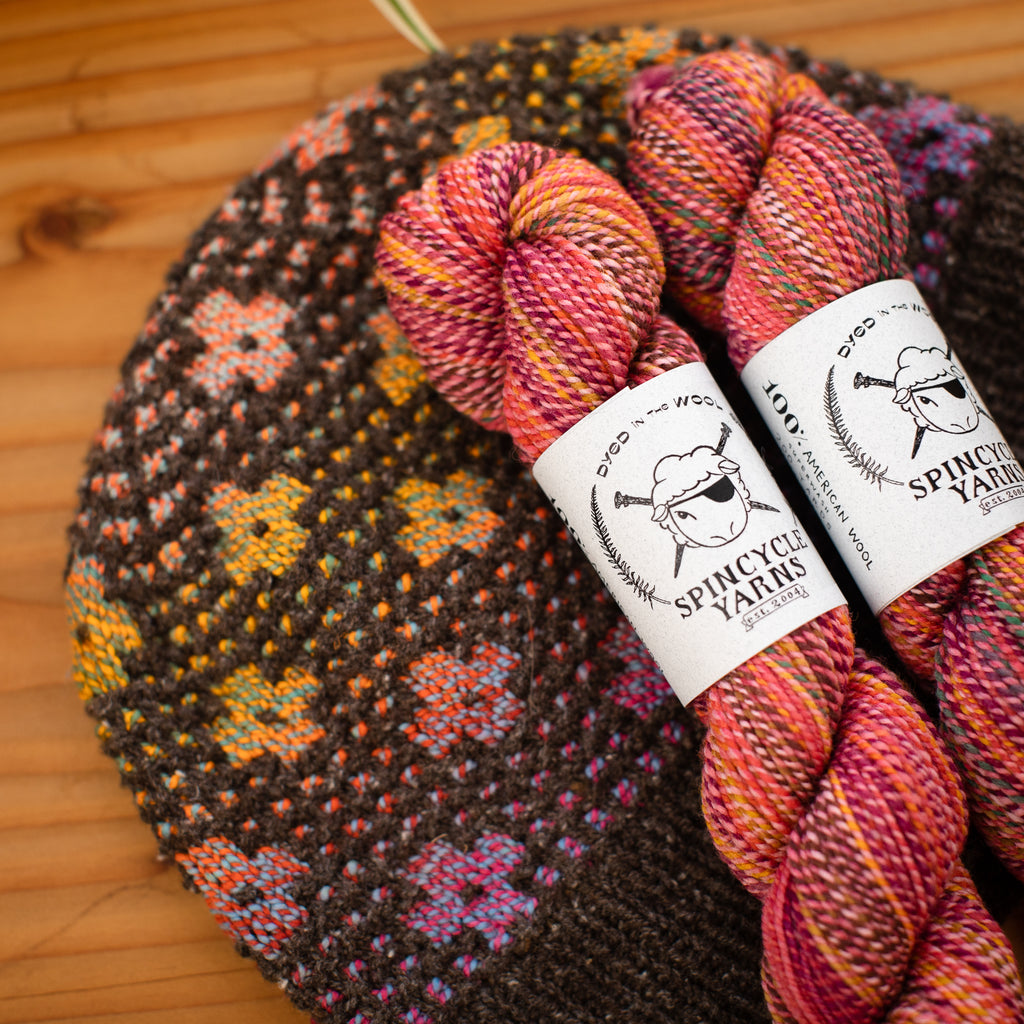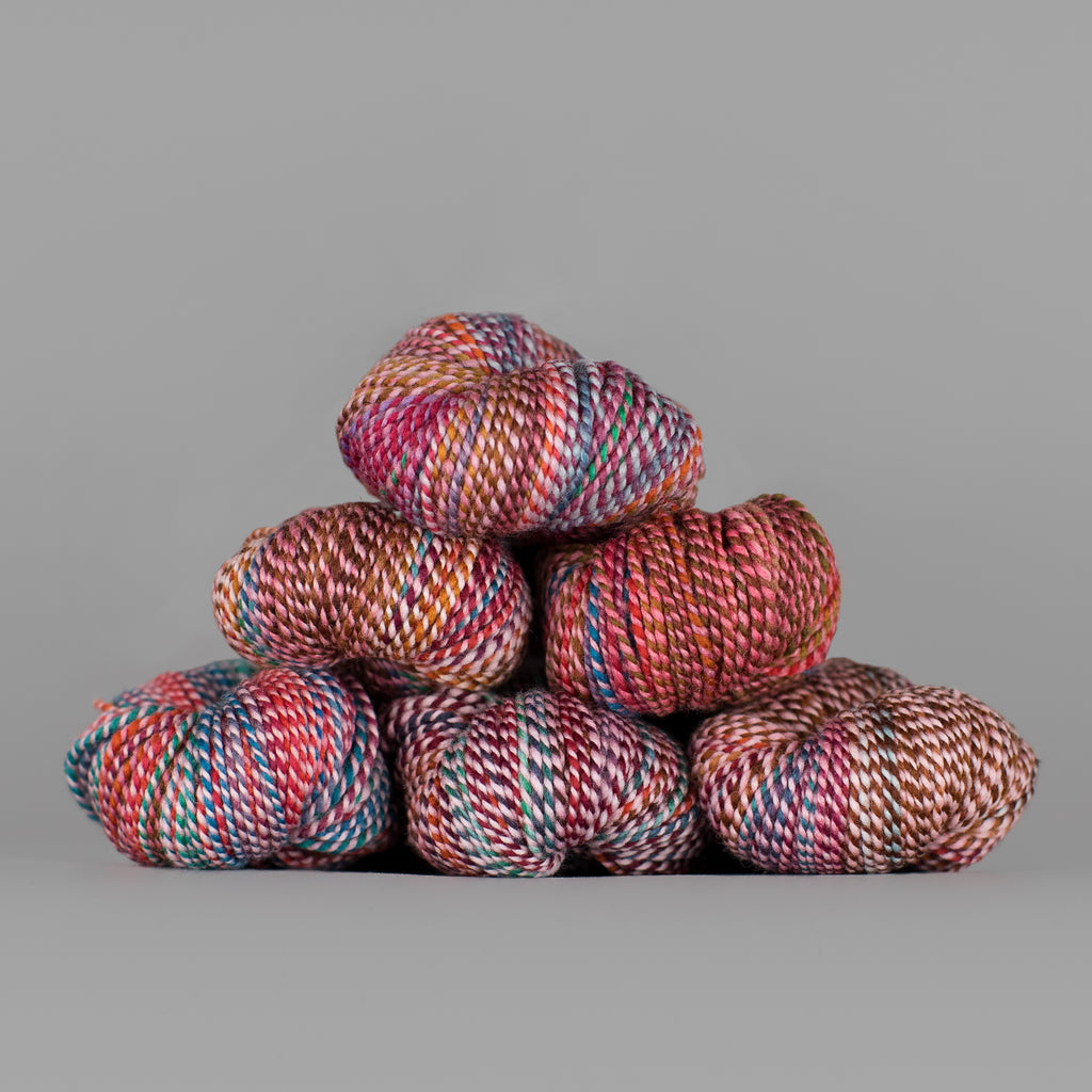 Here at the mill, we sometimes ply different colorways together to clear off bobbins with leftover yardage! When a skein or two of Wallflower x Rusted Rainbow came through, we were all INTO IT.
