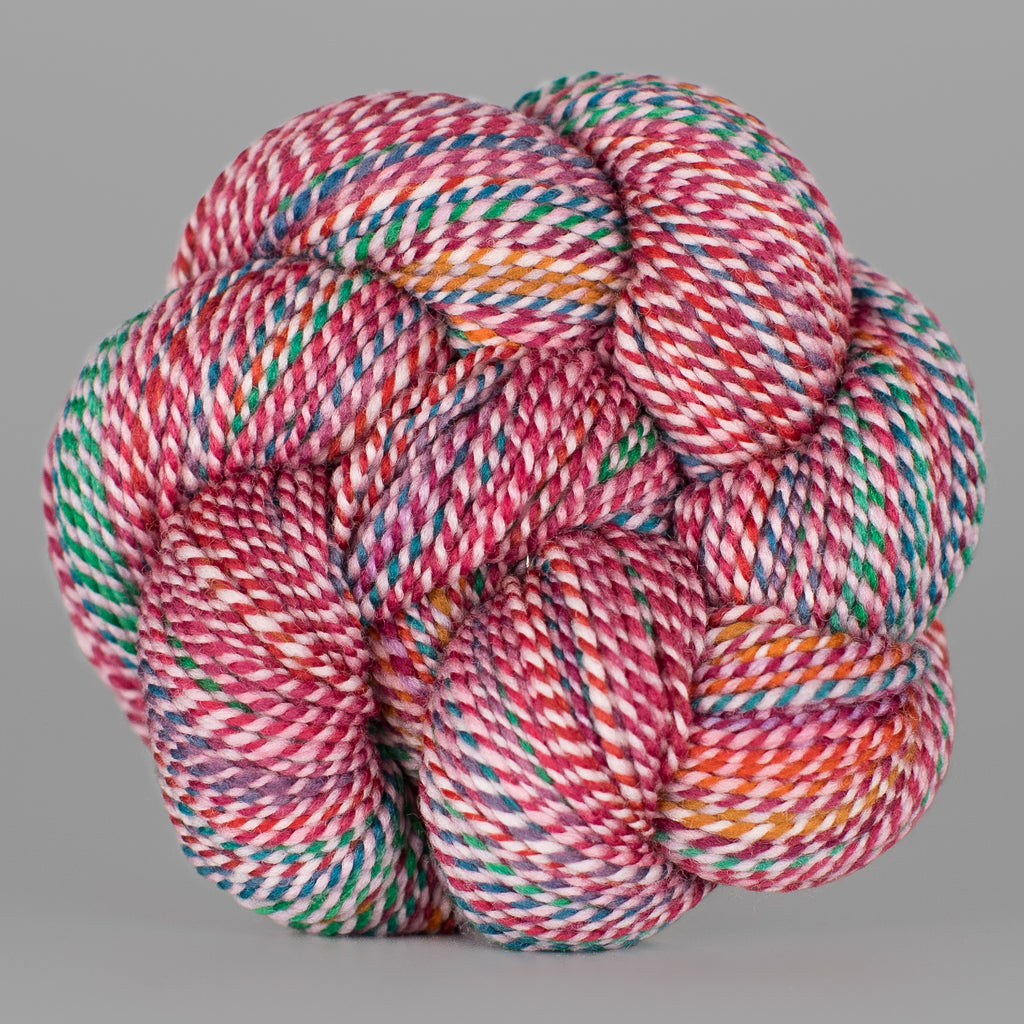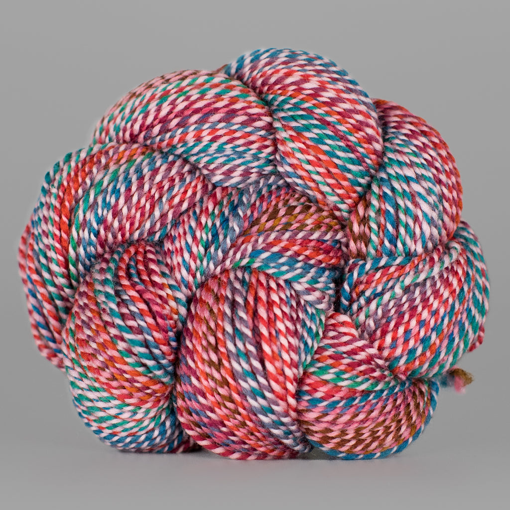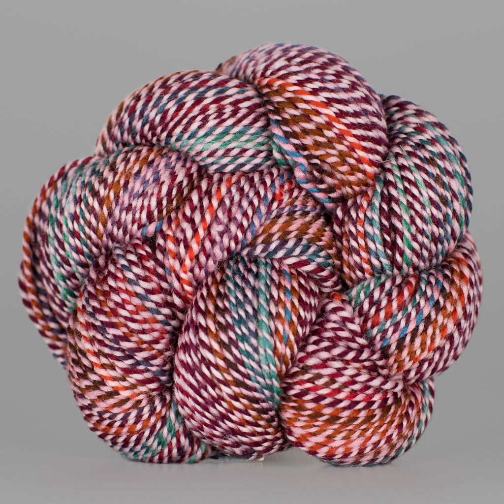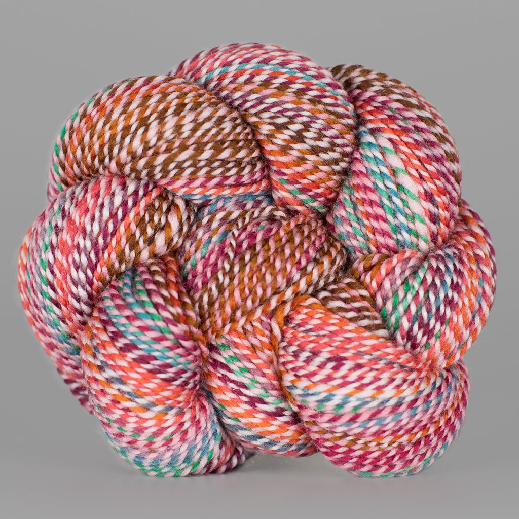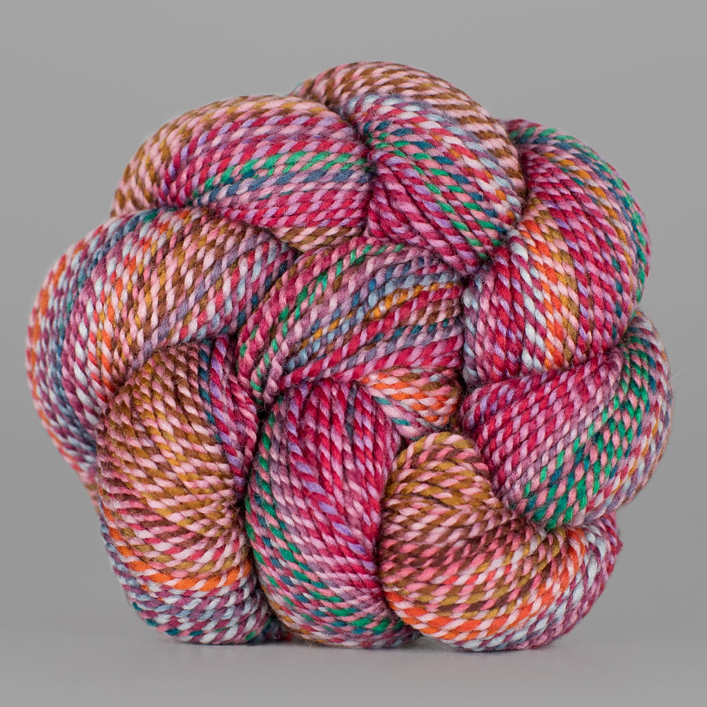 Here at the mill, we sometimes ply different colorways together to clear off bobbins with leftover yardage! When a skein or two of Wallflower x Rusted Rainbow came through, we were all INTO IT.